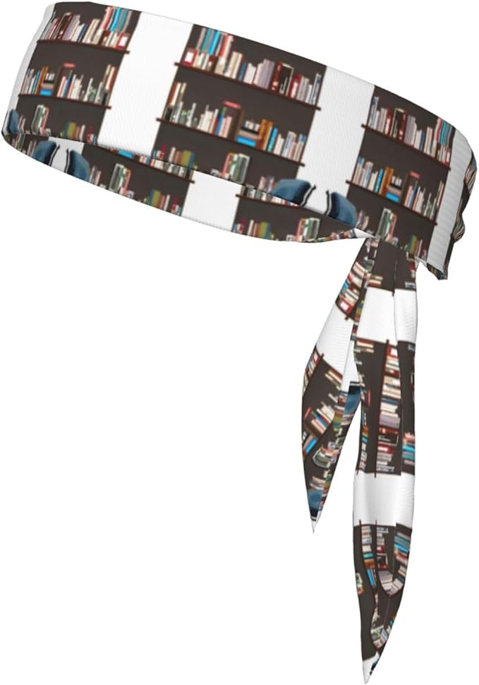 SSIMOO Library Bookcase Sports Head Tie, Double-Sided Headscarf, Headdress, Hair Band, Sweat Towel, Sports Bandage, Black