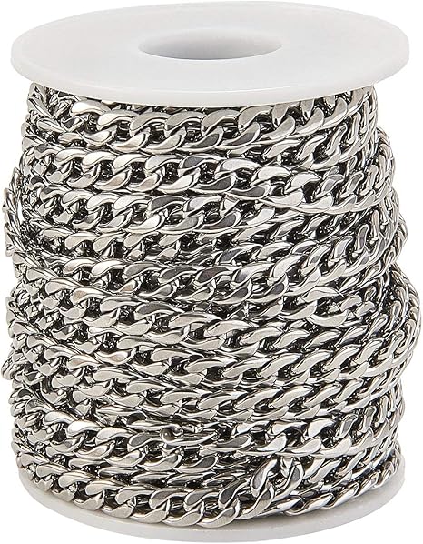 LiQunSweet 33FT(10 Meters) Hypoallergenic 304 Stainless Steel Strong Twisted Cuban Curb Chains Unwelded with Spool Roll for DIY Jewelry Making - 9x6mm