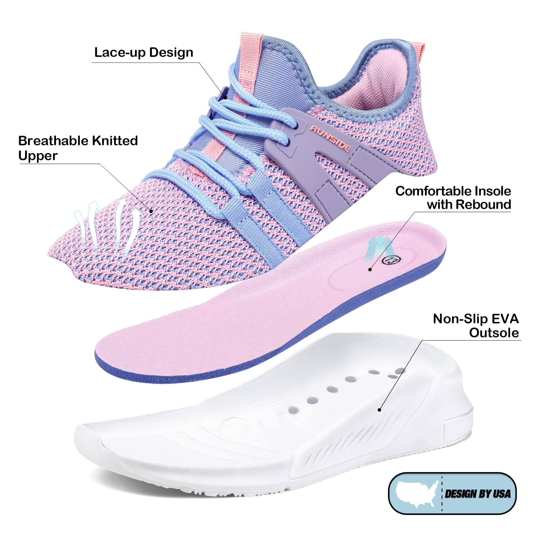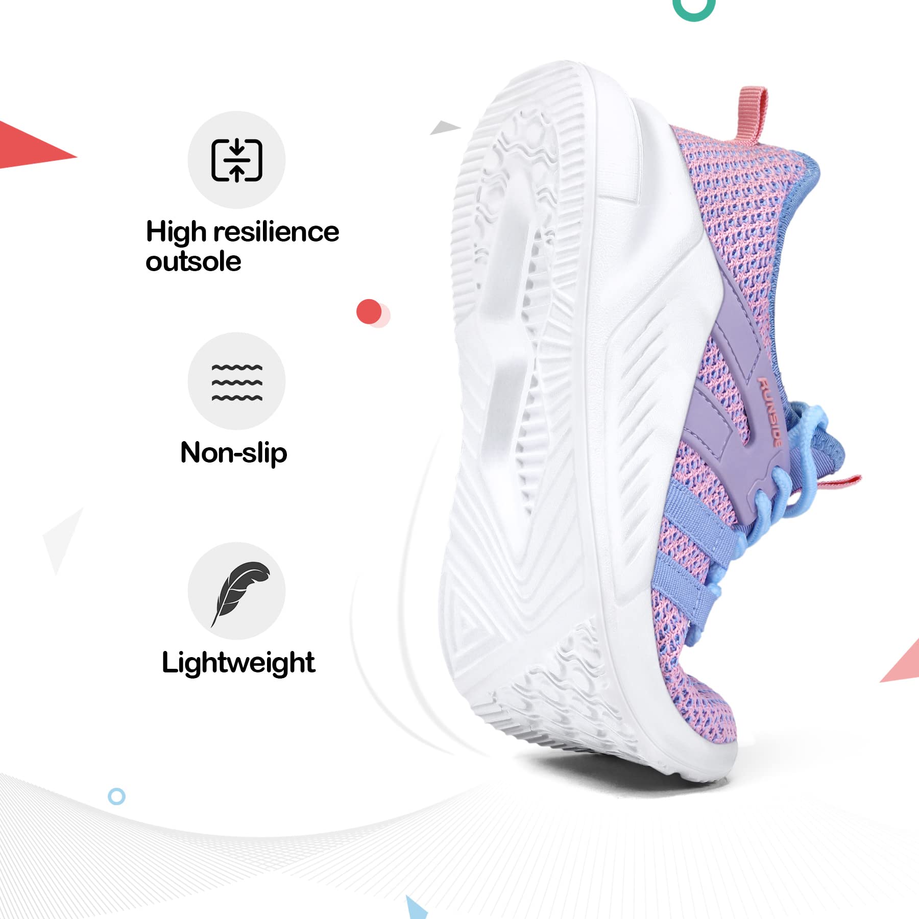 Details: These stylish sneakers feature a flexible durable EVA outsole with an ultra-soft insole that is lightweight and shock-absorbing for all-day comfort and cushioning for kids. Anti-slip design and ankle protection design keeps them safe from injury during sports. The ultra-light material won't feel heavy to the child and will reduce binding on their feet. The breathable knitted upper keeps children's feet well-ventilated and dry, and dries quickly after getting wet, which is very practical when playing outdoors. The lace-up design can be freely adjusted according to the comfort of the foot, and the slip-on design is easy to put on and take off. The colorful appearance is very cute and nice looking, which will become children's favorite shoes. Kids can wear these shoes for running, playing tennis, and other sports activities at school. Match them with sportswear or casual wear for a comfortable athleisure style.