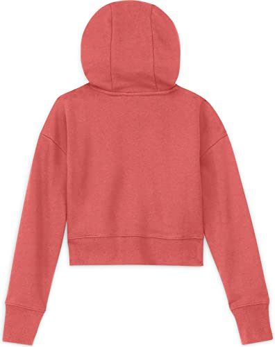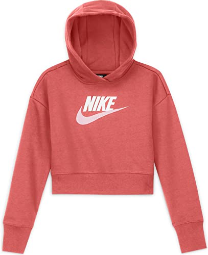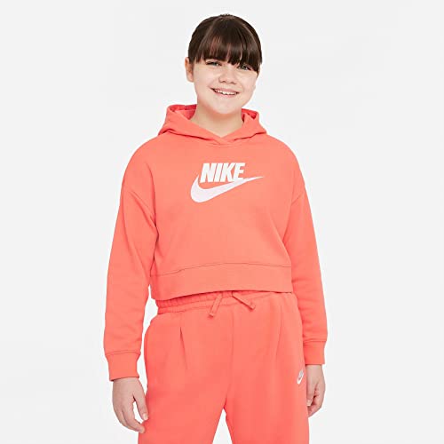 Nike Girls' Sportswear Club French Terry Cropped Hoodie (Small, Magic Ember/White/Pink Foam)