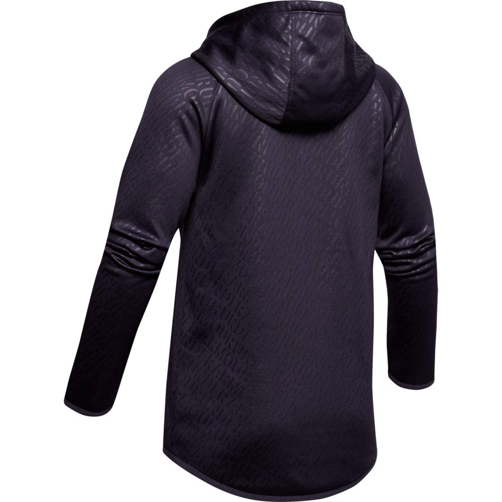 Details: Armour Fleece is light, breathable & stretches for superior mobility. Soft inner layer keeps you warm & comfortable. Front kangaroo pocket. Dropped, shaped hem for enhanced coverage. Raglan sleeves. Color pop binding & printed hood liner. All-over emboss texture.