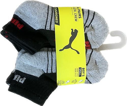 Details: PUMA 6 PAIRS QTR CREW BOYS SMALL SOCKS SHOE 4-8.5 SOCK 5-6.5