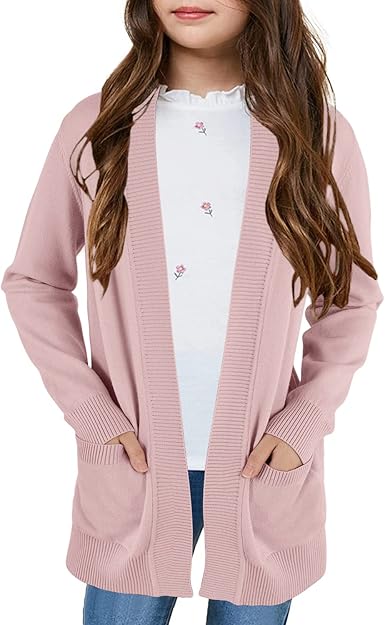 Girls Cardigan Knit Open Front Long Sleeve Sweaters Fall Casual Outwear with Pockets for 5-14 T Kids