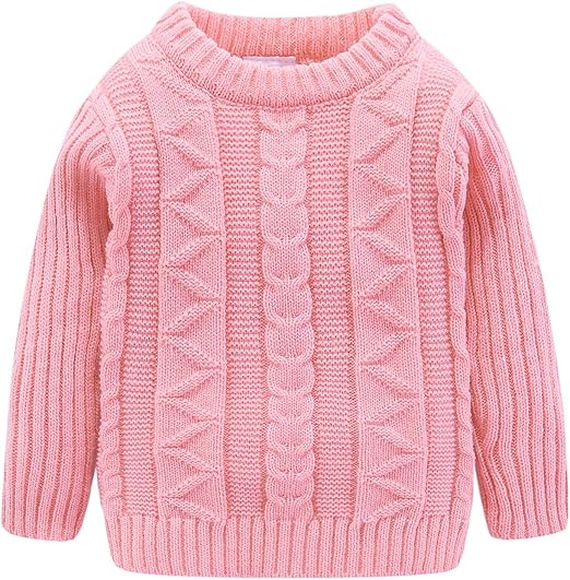 Mud Kingdom Little Kids Cable Knit Sweater Unisex Long Sleeve Solid Color Pullover