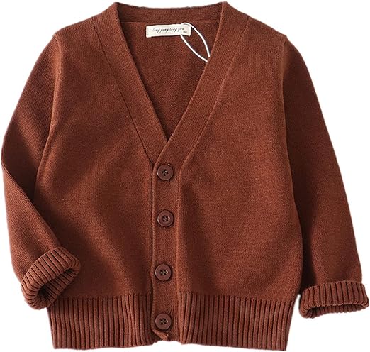 PTPUKE Unisex Boy' Girls' Cardigans Sweater V-Neck Long Sleeve Button Soild Cotton Knit Sweaters for 1-8 Years