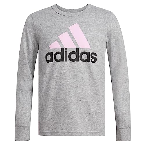 Details: She can move through her day the adidas way in this girls' long sleeve tee. Active kids stay comfortable through all of their activities thanks to soft cotton-blend jersey. Logo graphics give it a sporty touch that pairs as well with skirts as it does with leggings.
