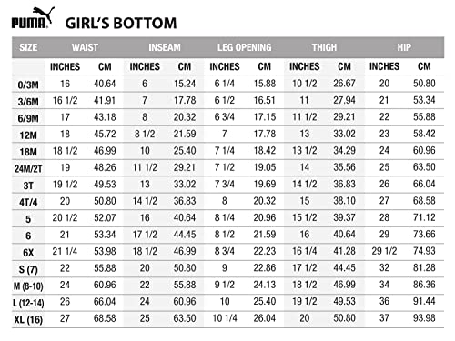 • Adjustable Elastic Waistband: These PUMA girls’ pants feature an elastic waistband with drawstring closure to accommodate growing between sizes