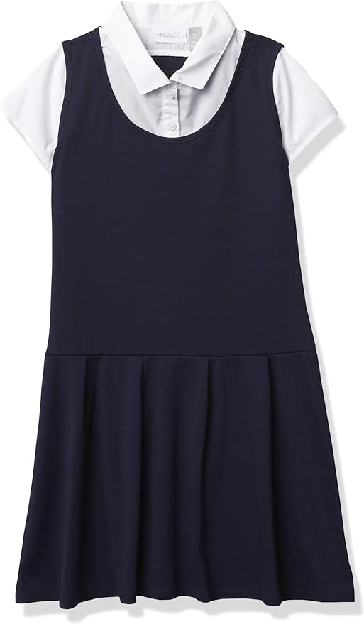 The Children's Place Girls Short Sleeve Ponte Knit 2 in 1 Dress, Tidal Single, Large US
