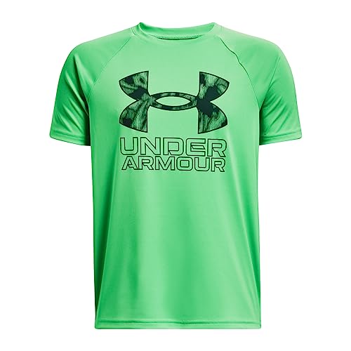 Under Armour Boys' Standard Tech Hybrid Printed Fill Short-Sleeve T-Shirt, (316) Green Screen / / Greenwood, X-Large