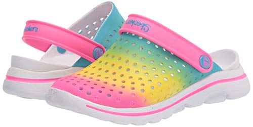 Details: Have a colorful party of cute style and easy wearing comfort with the Cali Gear: Skechers GOwalk 5™ - Play By Play shoe. Features lightweight, responsive cushioning and high-rebound midsole pillars for walking comfort. Sculpted nearly one piece Cali Gear® slip on casual convertible clog design with ombre color look.