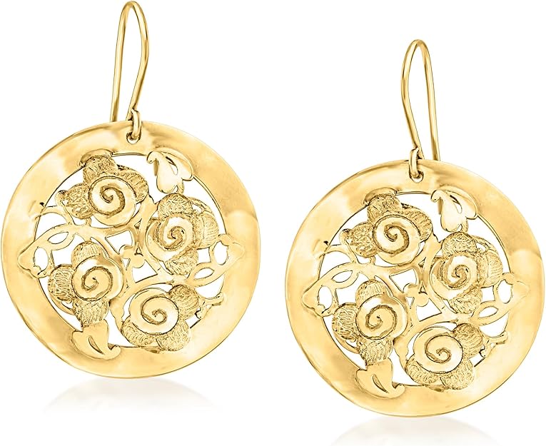 Ross-Simons Italian 18kt Yellow Gold Floral Drop Earrings