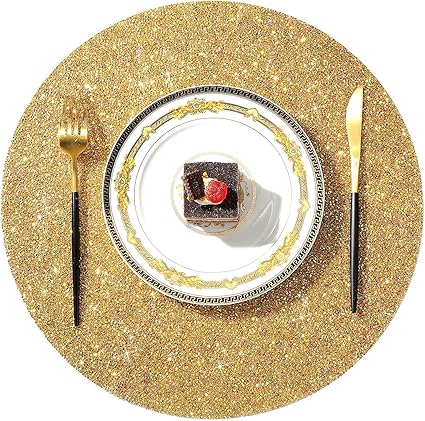 Blulu 4 Pieces Round Rhinestone Placemat 15 Inch Sparkle Place Mats Glitter Bling Placemat Glam Decorative Table Mats Washable for Fall Halloween Christmas Kitchen Wedding Banquets (Gold)