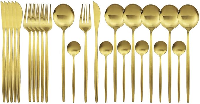 JASHII Matte Gold Silverware Set, 24 Pieces Stainless Steel Tableware Sets Flatware Set Cutlery Sets, Service for 6 (Matte Gold)