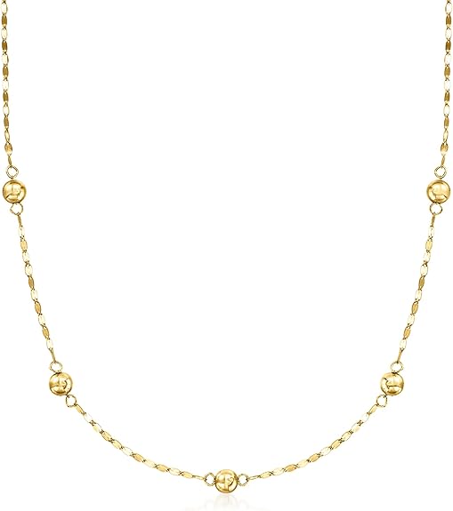 Ross-Simons Italian 14kt Yellow Gold Bead Station Lumachina-Chain Necklace. 18 inches