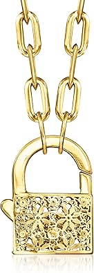 Ross-Simons Italian 14kt Yellow Gold Floral Lock Paper Clip Link Necklace