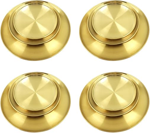 12 Pack Stainless Steel Plates, Reusable Brushed Metal Dinner Plates, Metal Dinner Dishes for Picnic BBQ Steak(gold)