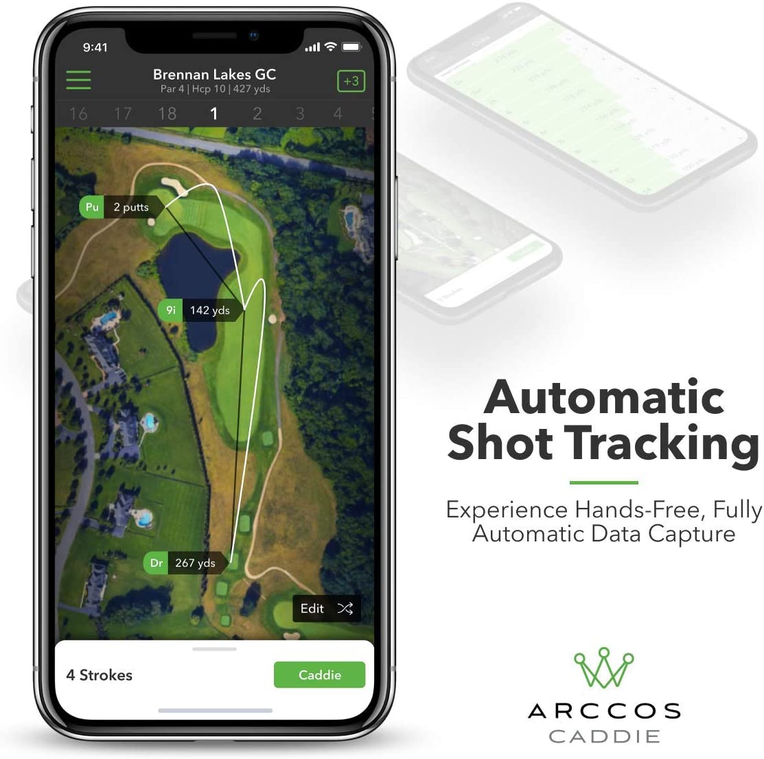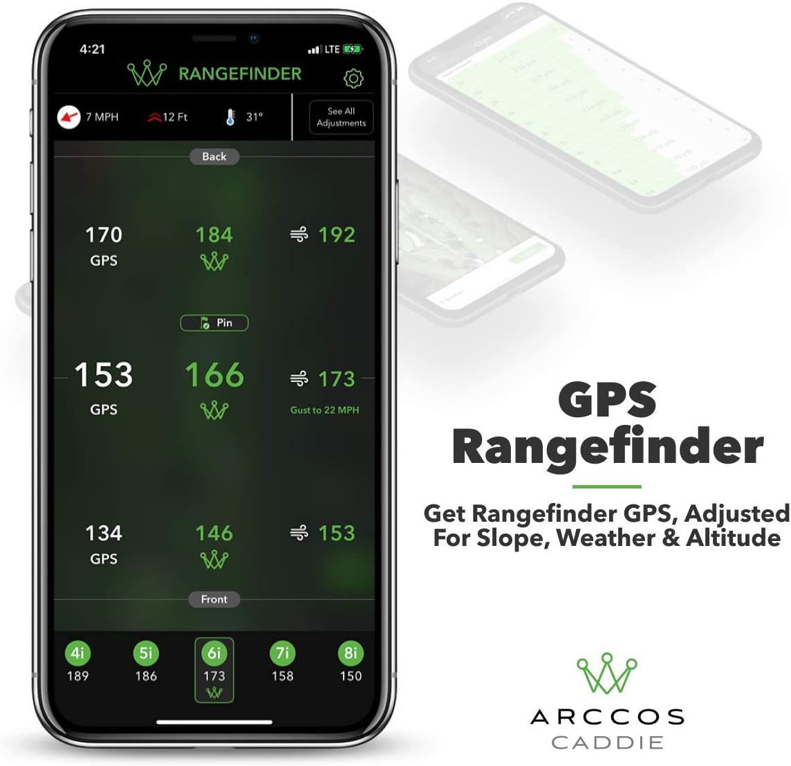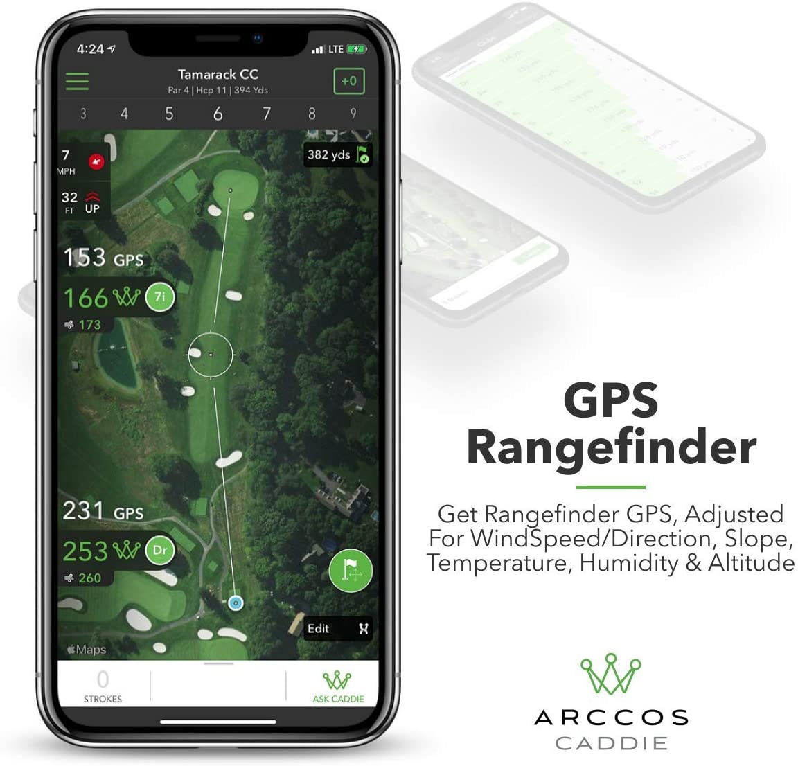 • A.I. Powered GPS Rangefinder, first-ever rangefinder that adjusts in real-time for wind (including gusts), elevation, temperature, humidity and altitude providing the most precise yardage in the game the Arccos Caddie Number.