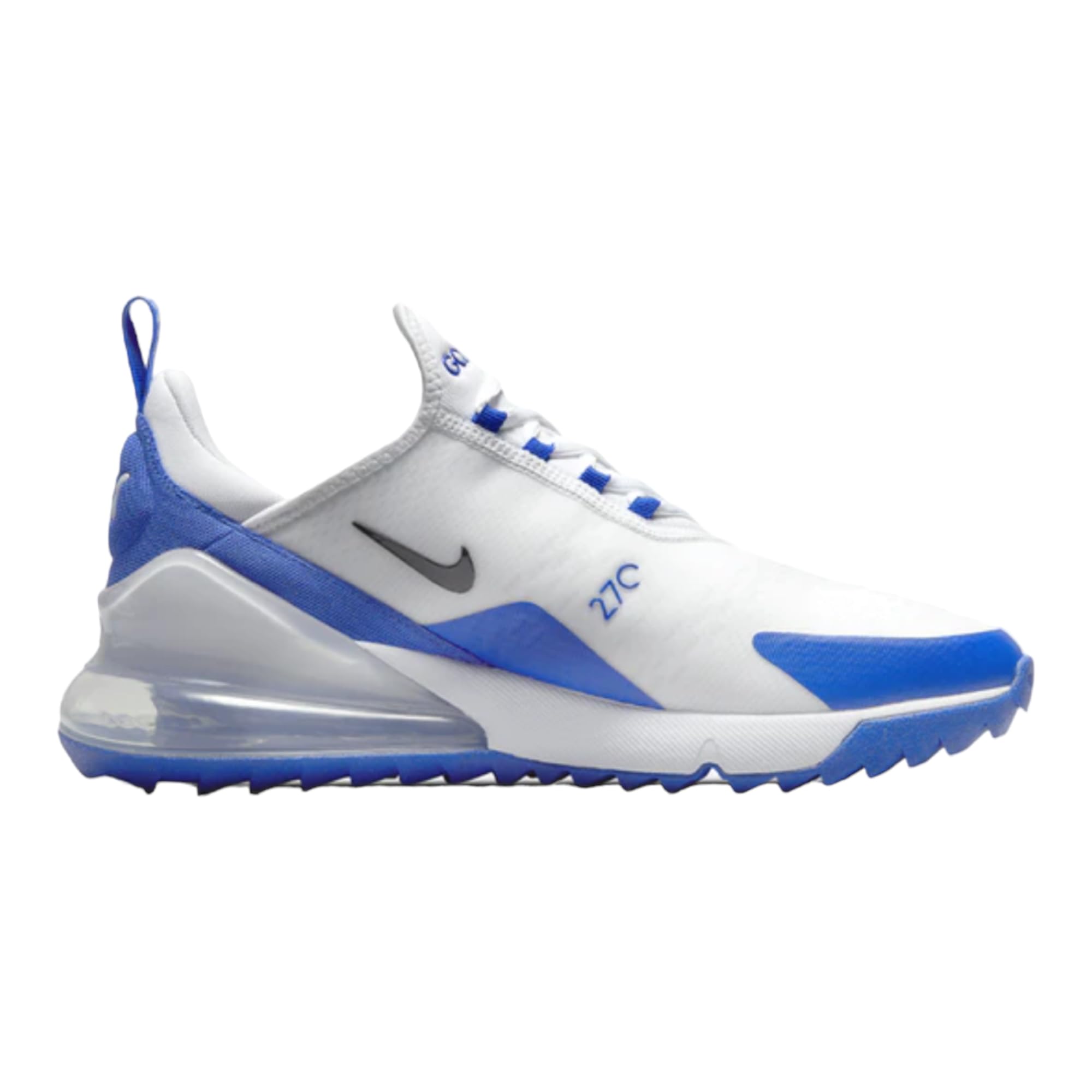 Details: BIG AIR ICON WITH TOUR-LEVEL TRACTION. Look legendary in the Nike Air Max 270 G. The silhouette is a stitch-for-stitch reconstruction of the original big Air icon, with the addition of breathable mesh and innovative traction that performs at the highest level of play. Flexible and Breathable Sleeve-like upper is a stitch-for-stitch reconstruction of the original Nike Air Max 270. The mesh has a flexible overlay that helps keep out water and makes it easier to clean your shoes. Cushioned Comfort Foam midsole has a large Max Air unit for plush cushioning with each step. Versatile Grip Integrated traction pattern is designed to perform at the highest levels of play, while still being versatile enough to wear off course. The perimeter of the outsole is specially designed to enhance grip during rotational movements.