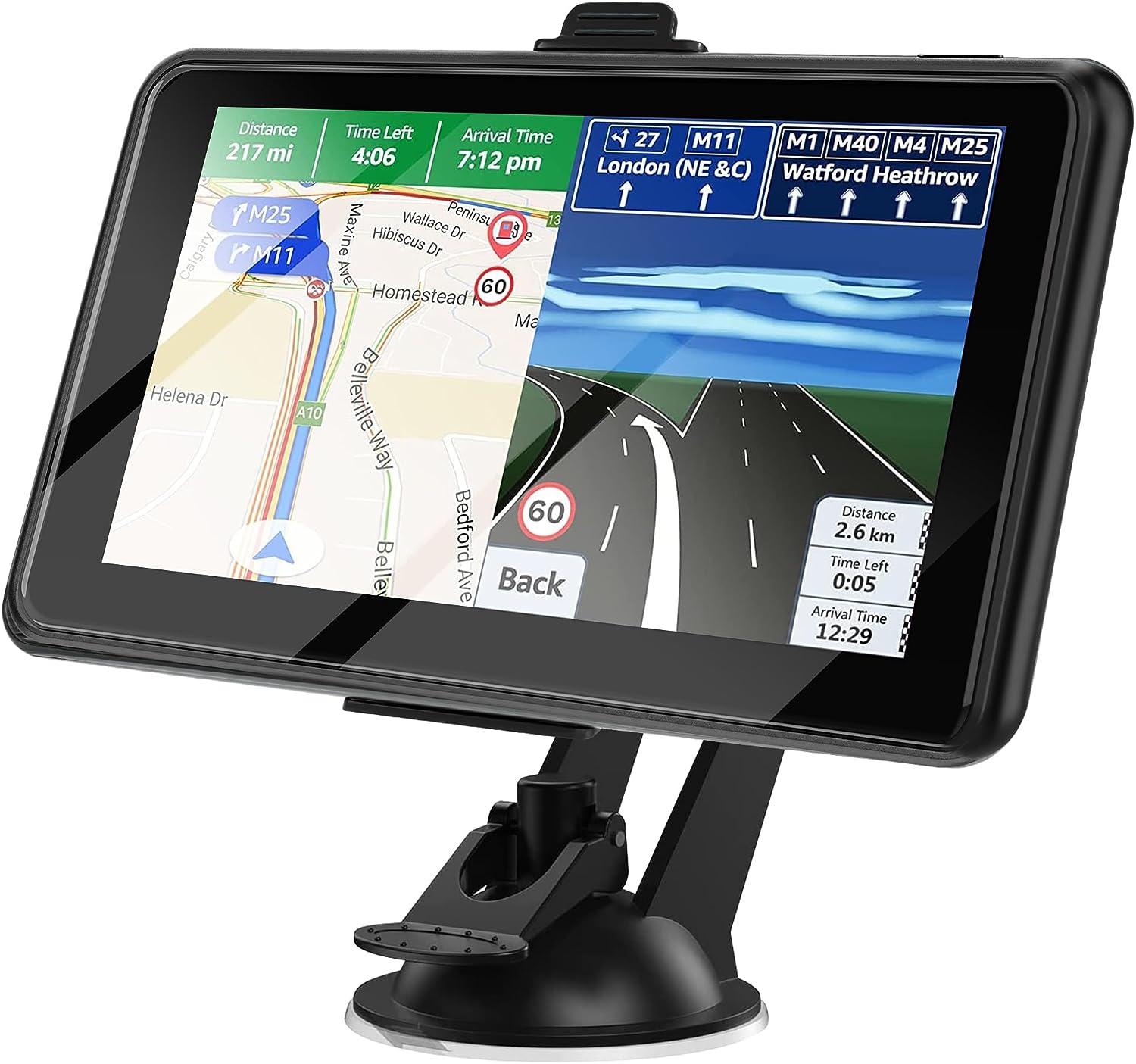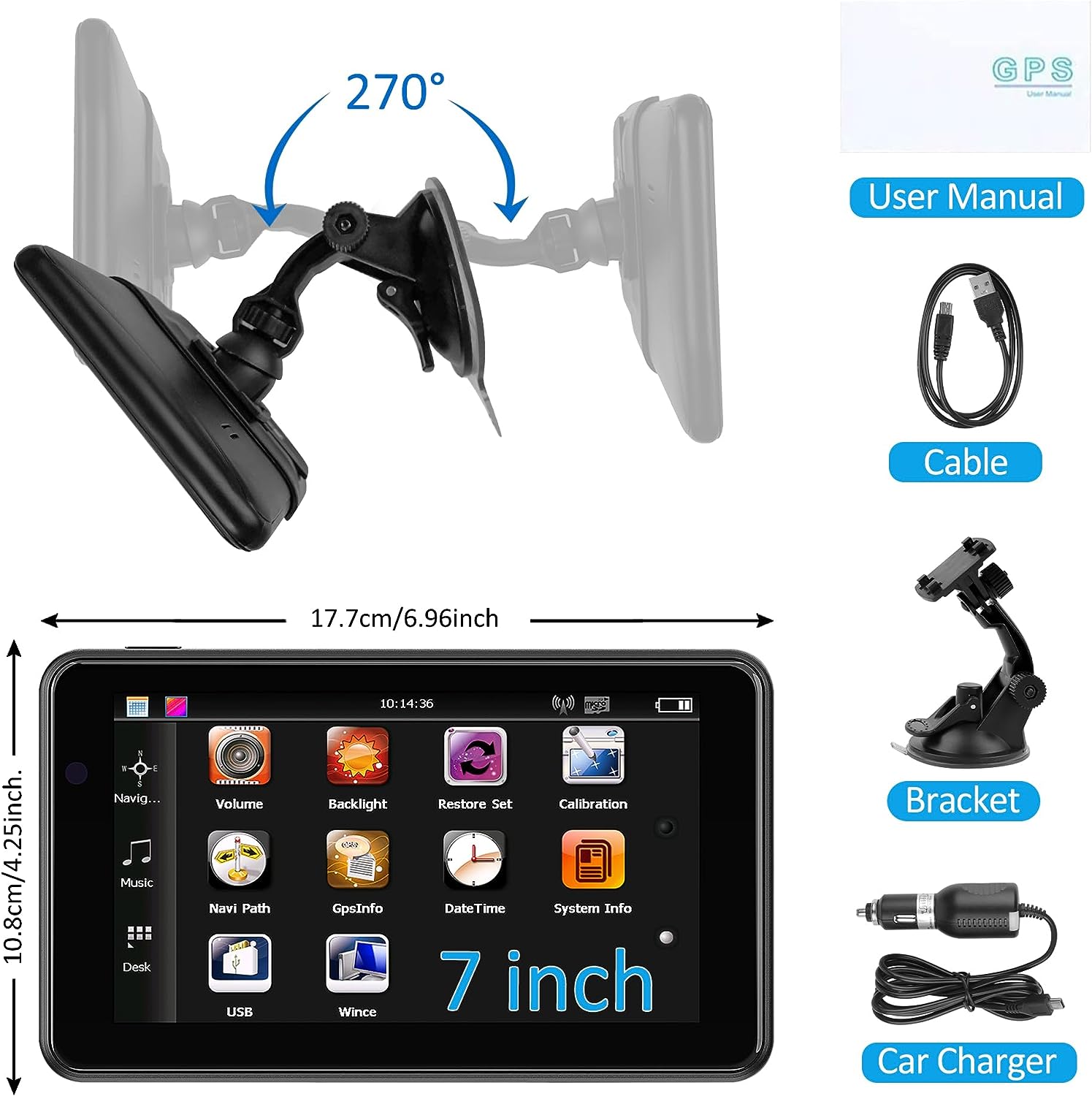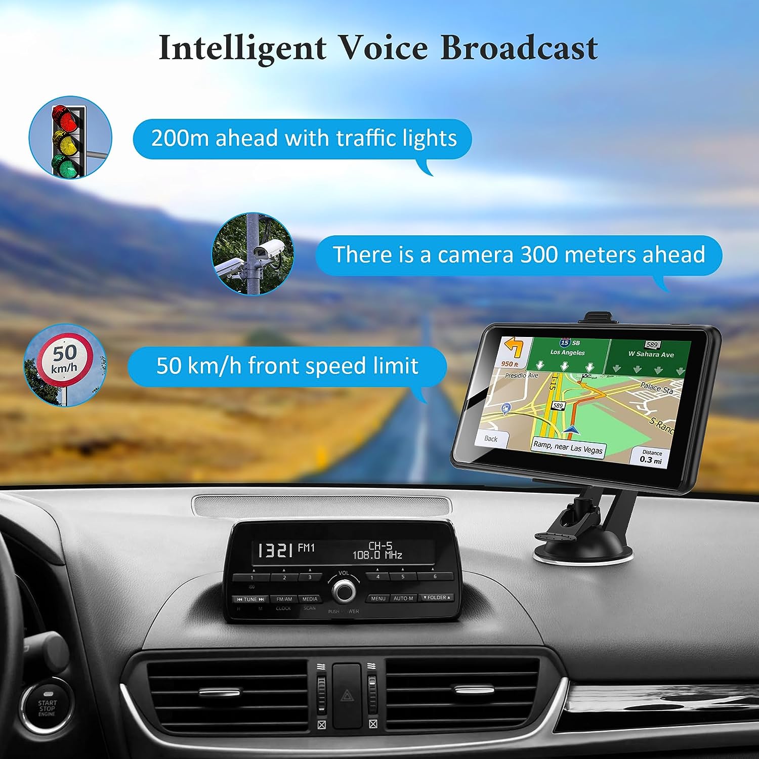 • 🚘【Intelligent Navigation System】 ①Smart Car Navigator provides you with speed warnings so you can easily avoid tickets. ② Support Postcode, Address, Coordinates, Favorite and POI Search, such as gas stations, rest areas, etc. ③ Provides Speed Warning, Route Planning, Street Names Broadcast, Current Speed, Remaining Distance, Estimated Arrival Time ( real voice announcement) to give you a better driving experience. ④Support FM sound transmitter, GPS time / Map time setting.