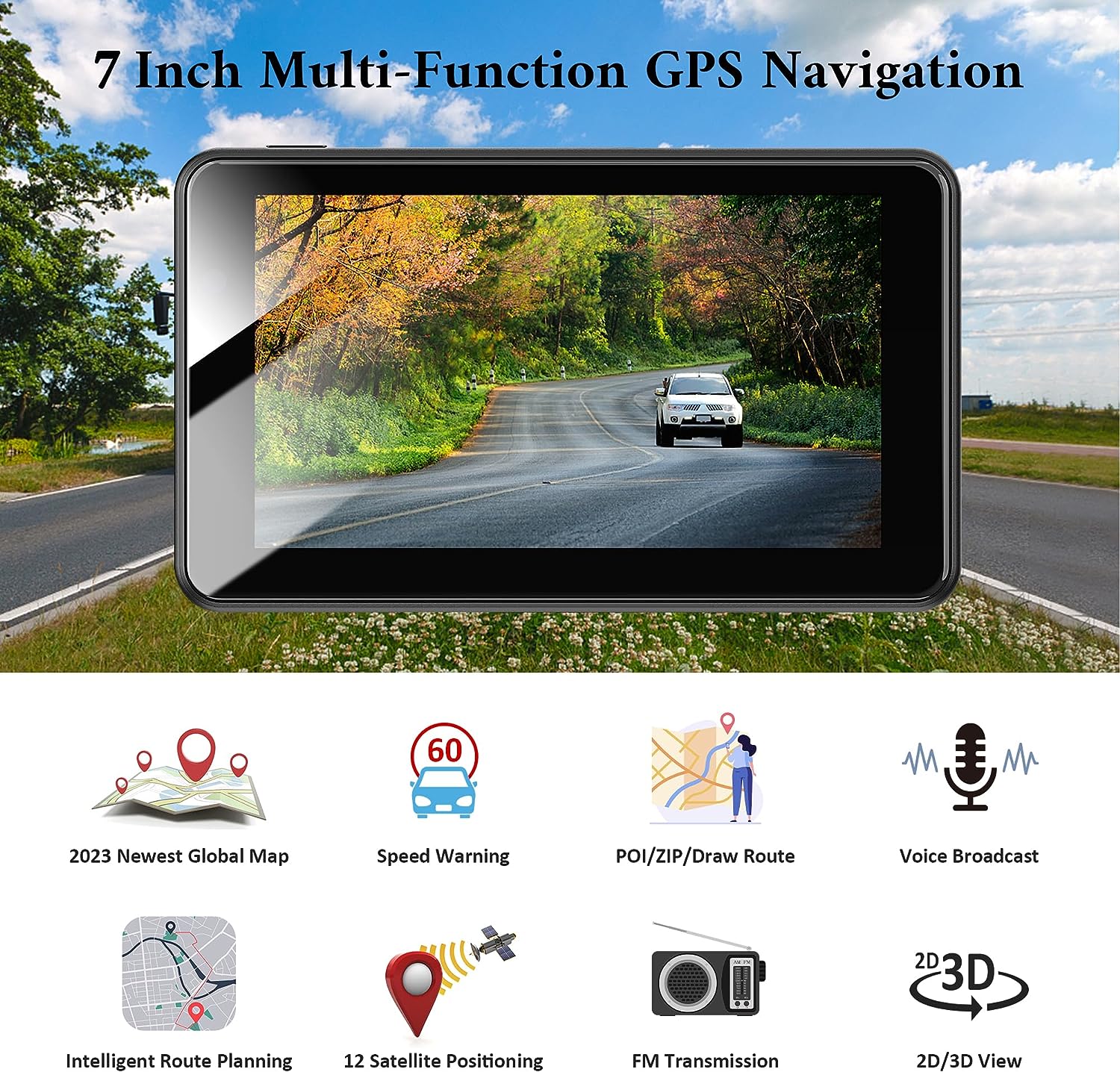 2023 Latest GPS Navigation Car, Truck GPS Commercial Drivers Semi, 7 Inch 2.5D Screen World Navigation System,Lifetime Free Map Updates,8GB 256M with Voice Guidance, Speed Limit Warning,America,Europe