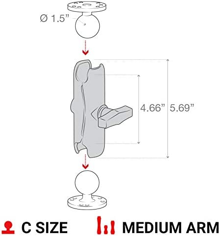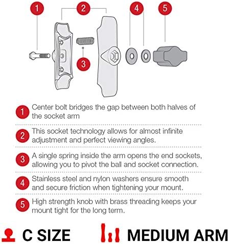 • Attaches to any C size RAM ball component, including mounting bases and device holders; double ball and socket technology allows for near-infinite adjustability of your RAM mounting system