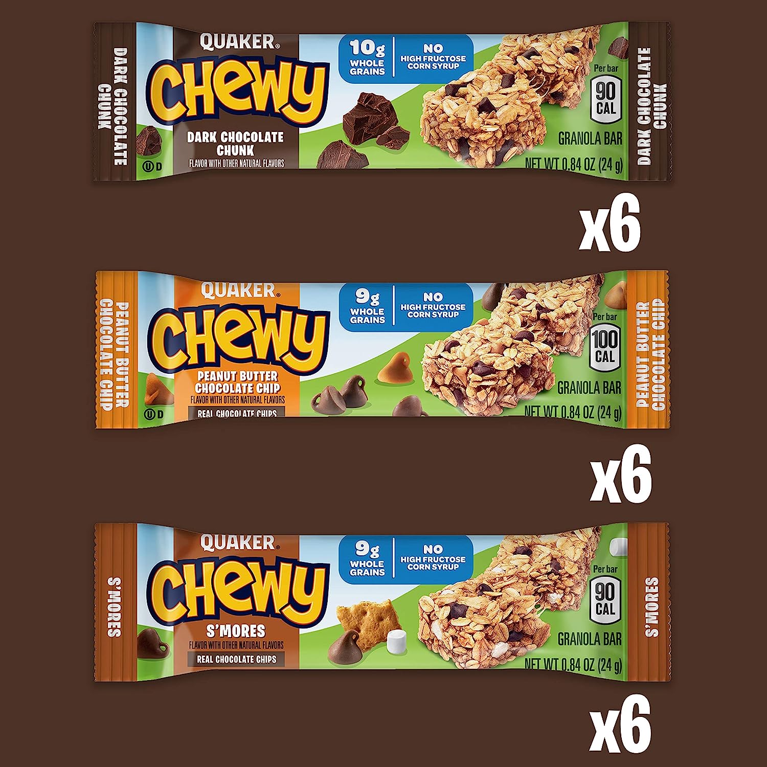 Variety is the spice of life, and now your family can choose from a variety of Quaker chewy granola bars. With family favorite flavors like chocolate chip, peanut butter chocolate chip, s’mores, and oatmeal raisin chewy granola bars in each box, and 8 gram of whole grains in each bar, your family has tasty choices to help keep them going.