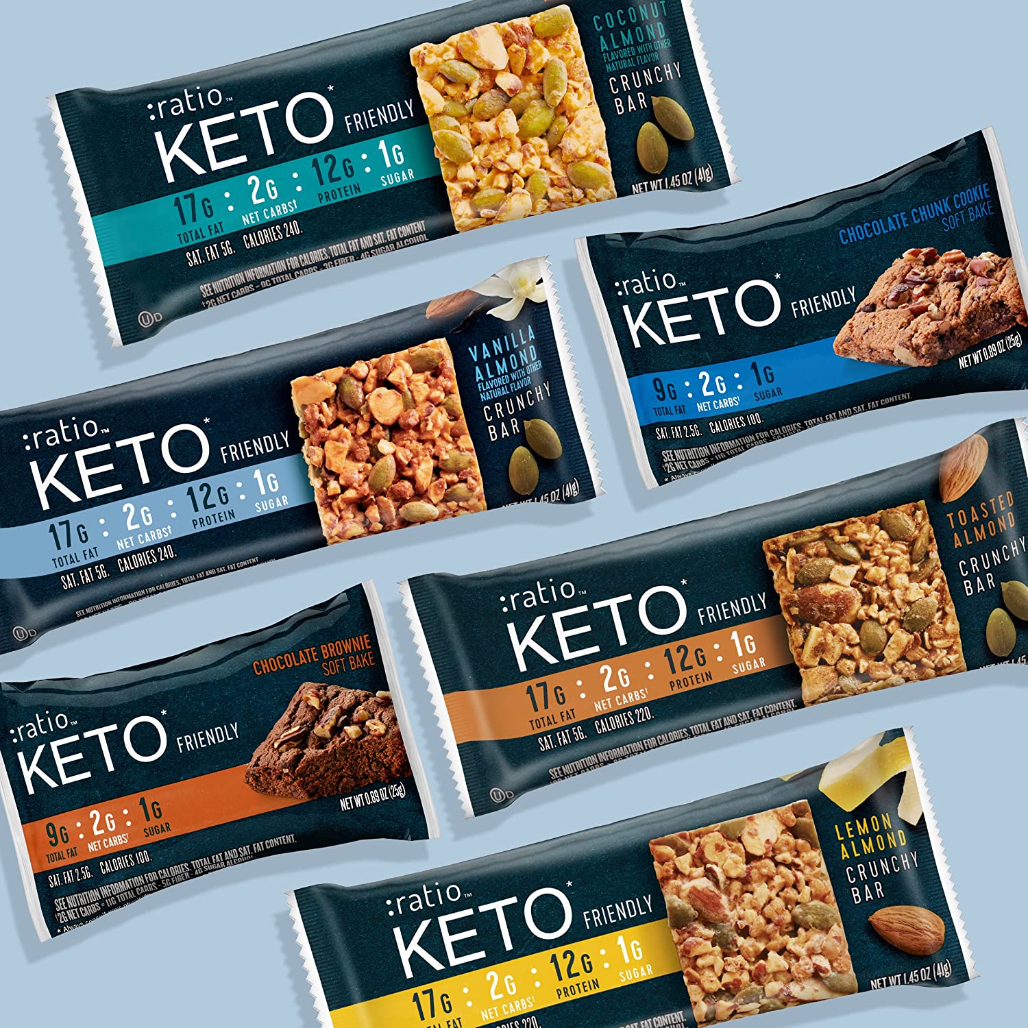 :ratio KETO Friendly Soft Baked Bars are a gluten free, tasty, soft baked bar option that still fits a variety of lifestyle goals. It's perfect on the go or as an option for breakfast. At :ratio, we know making daily food choices can be a tricky equation – that’s why we’ve done the math for you, so you can spend less time reading labels and more time living. With a focus on carefully selected ingredients, :ratio strikes a unique combination of protein, net carbs and sugar to keep you going. These soft baked bars have no added sugar and no artificial flavors or colors from artificial sources. Contains 6 soft baked bars in total.