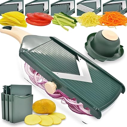 Adjustable Mandoline Slicer for Kitchen, Ultra Sharp V-blade Vegetable Slicer with Container, Slicer Vegetable Cutter, julienne slicer, Potato Slicer for Apple, Onion, Tomato lemon Slicer
