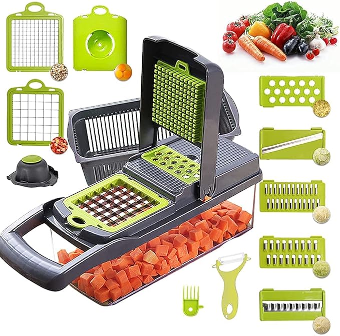 Vegetable Chopper Mandoline Slicer Cutter and Grater 11 in 1 Vegetable Slicer Potato Onion Veggie Chopper Dicer with Container Gray