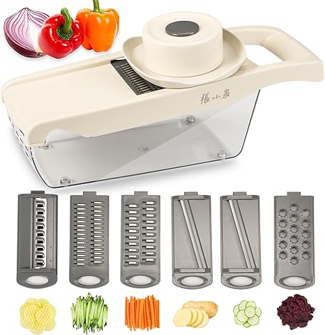 ZHANG XIAO QUAN SINCE 1628 6-in-1 Safe Mandoline Slicer for Kitchen, Cheese Grater Vegetable Spiralizer and Veggie Slicer for Cooking & Meal Prep Food Chopper