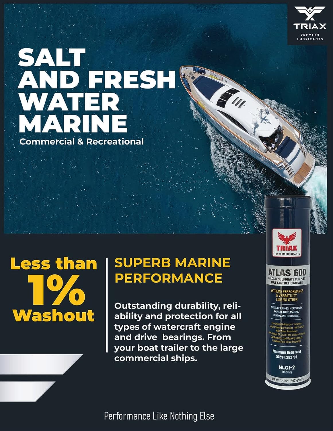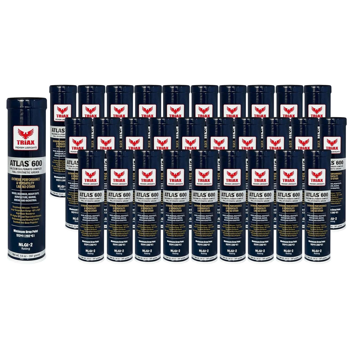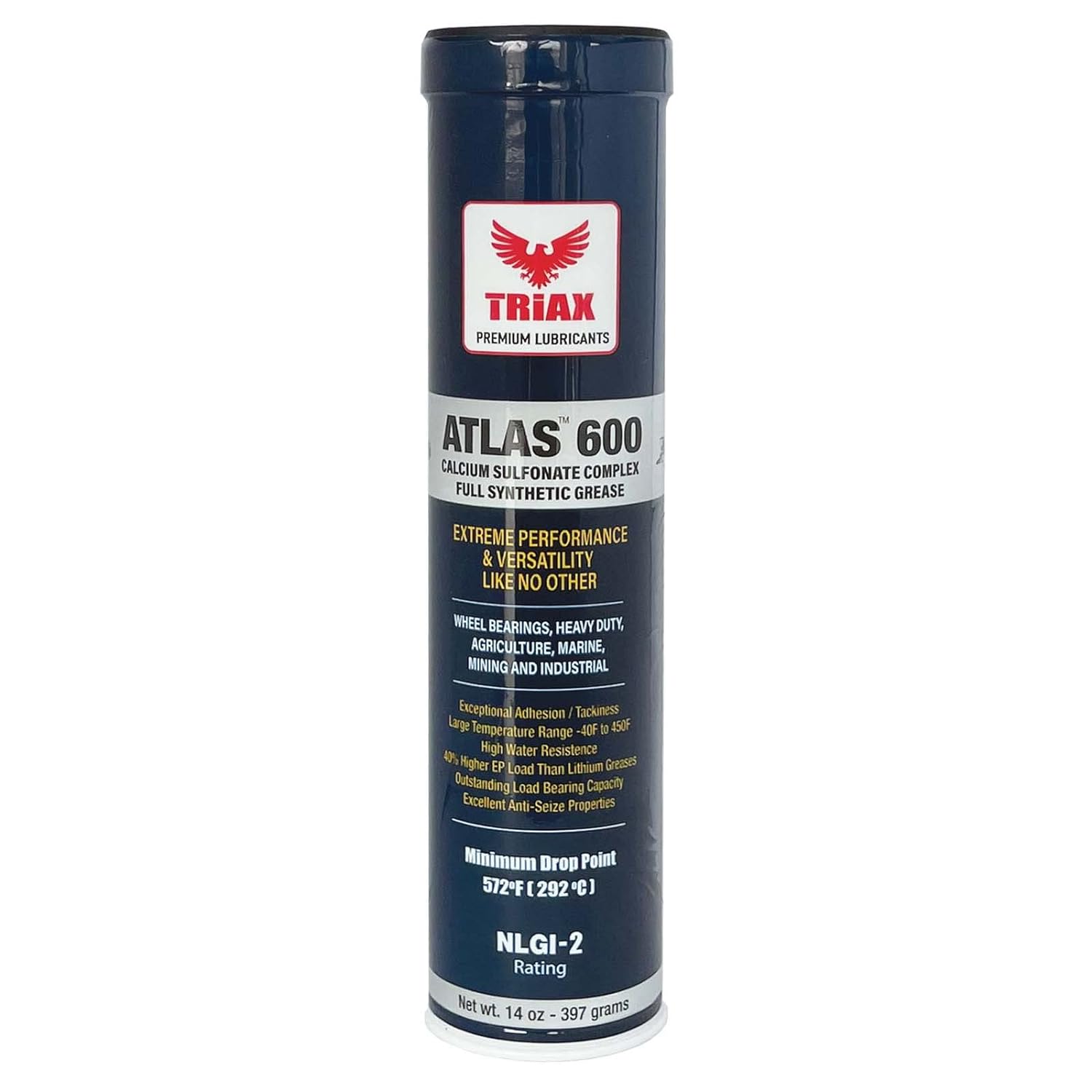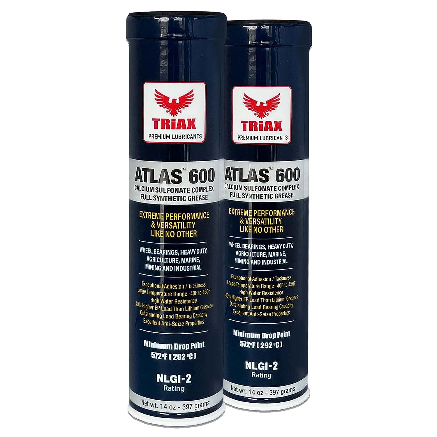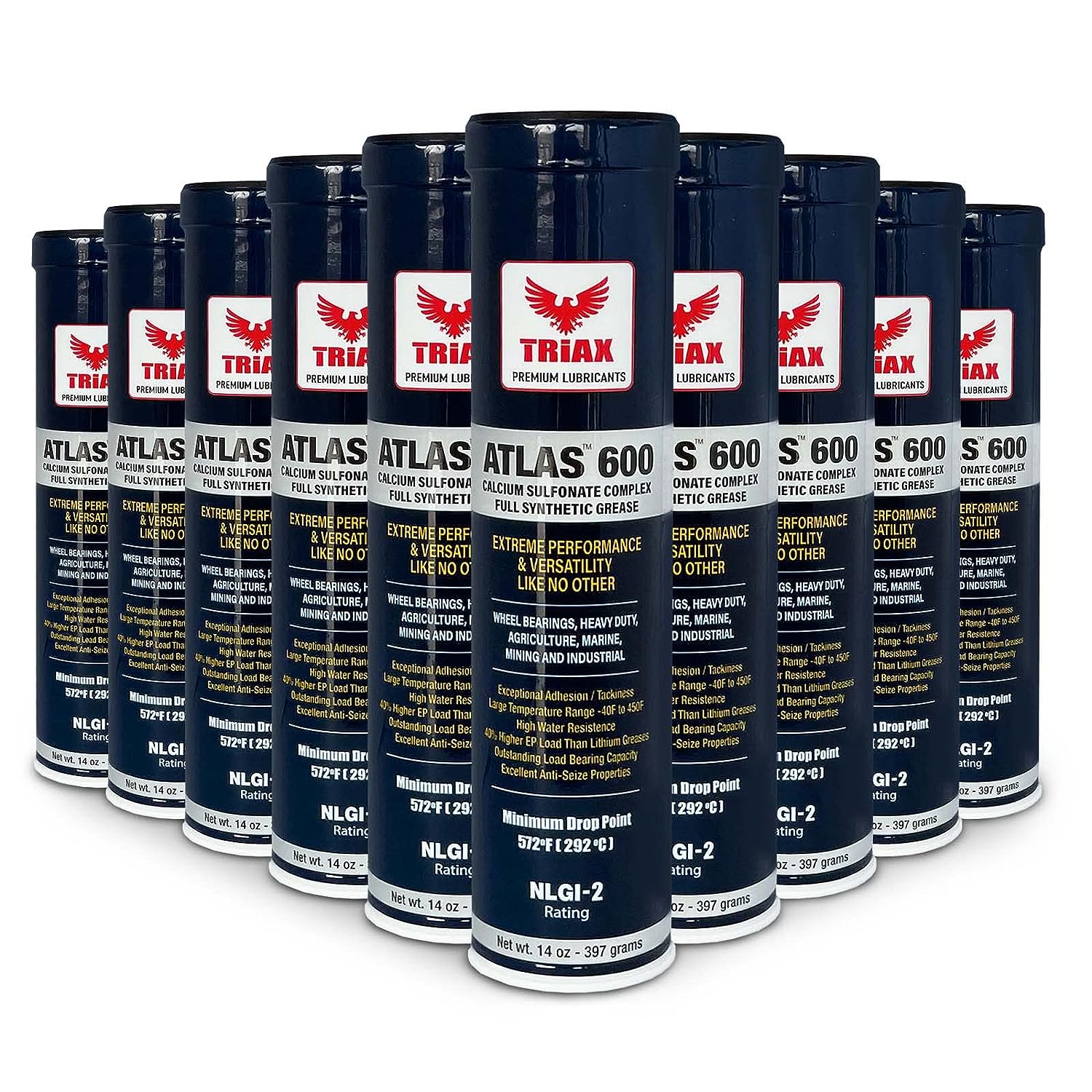TRIAX Atlas 600 Grease, Full Synthetic High Temp NLGI-2, Wheel Bearing, Heavy Duty Ultra High Performance, Virtually Waterproof, High Adhesion, High EP Rating (14 Ounce Cartridge - 10 Tube Pack)