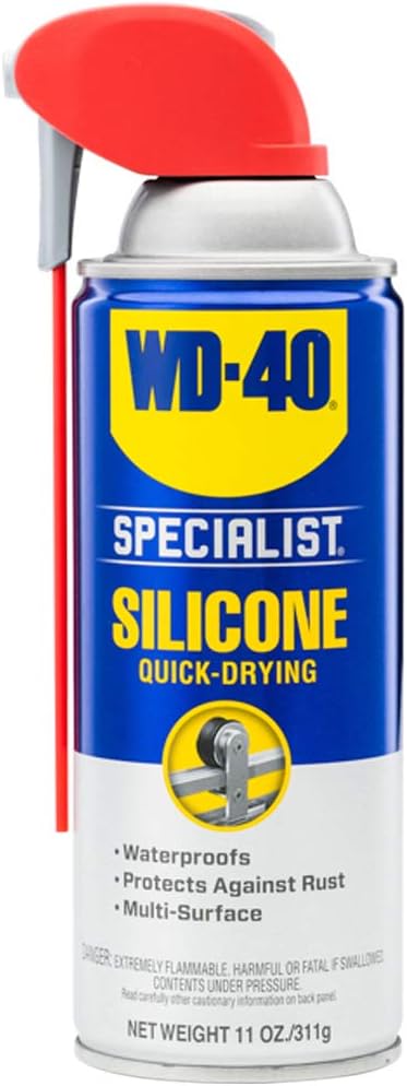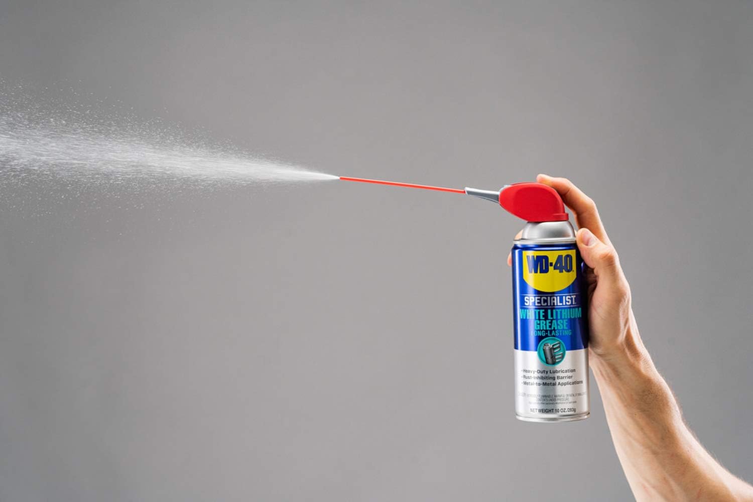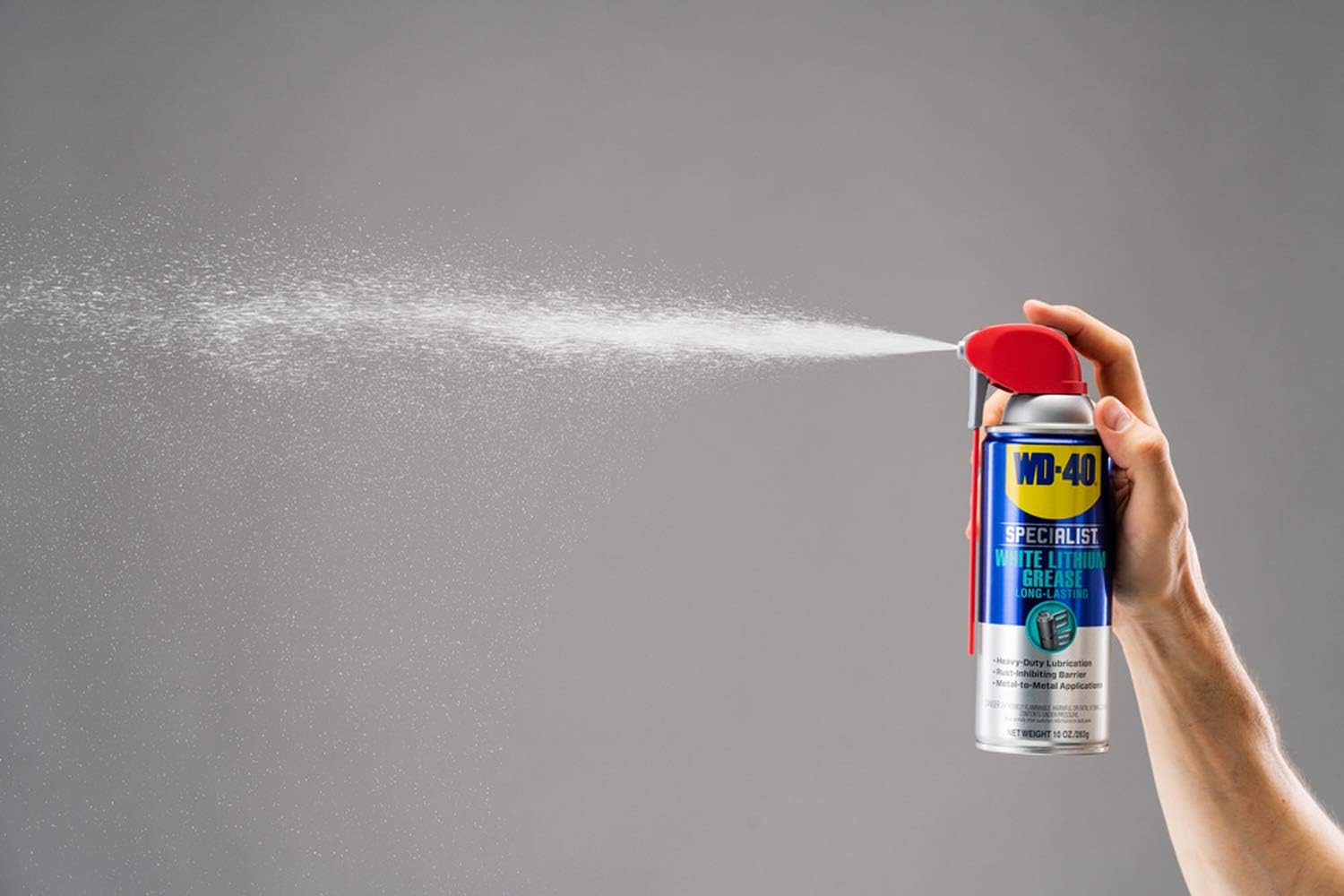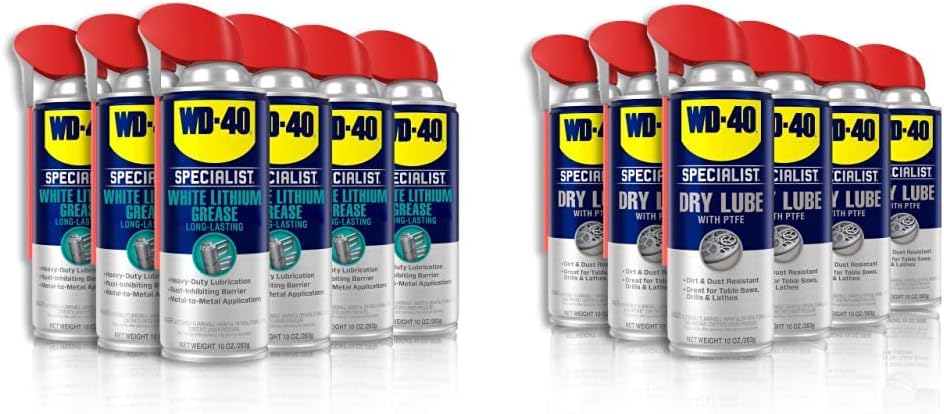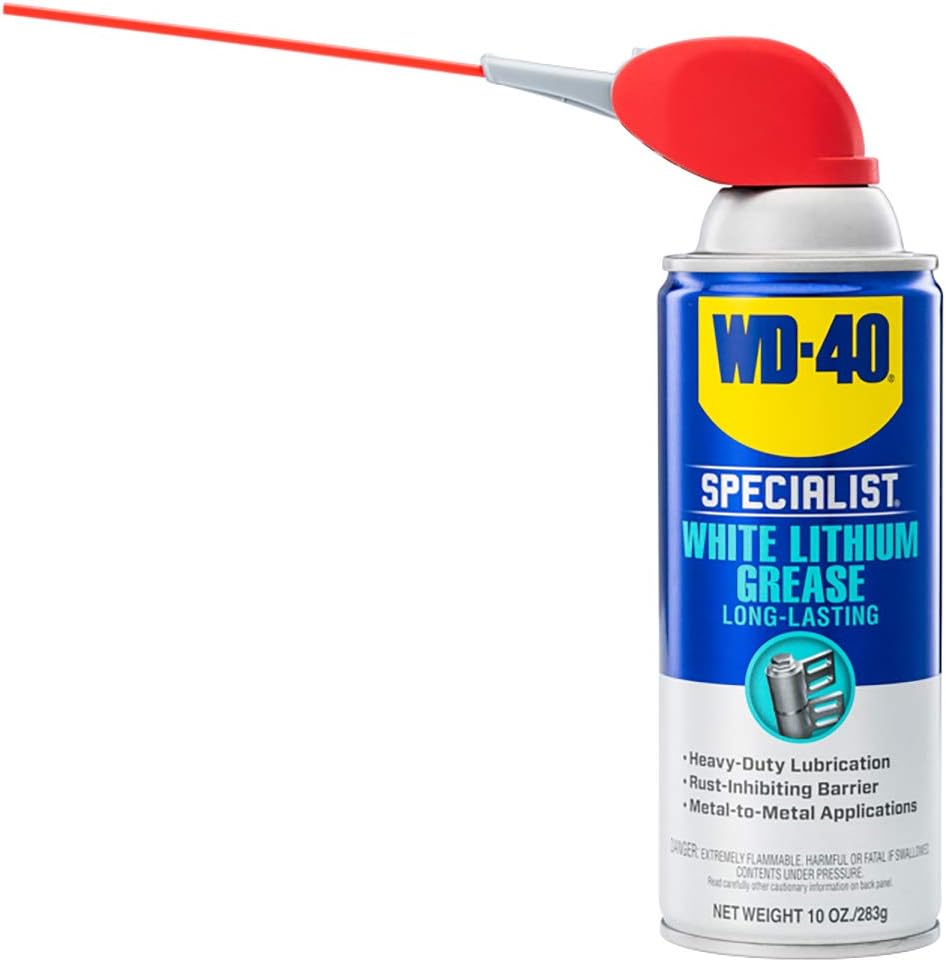 An aerosol grease that sprays on evenly as a liquid and sets dry for a thick protective coating that won't run off. WD-40 Specialist White Lithium Grease is ideal for metal-to-metal applications that require heavy-duty lubrication and leaves behind a rust-inhibiting barrier for protection against corrosion. This long-lasting formula won't melt, freeze, or run in harsh weather conditions. Also great for lubricating equipment before placing in storage. Sprays on easily with a thick, protective coating for outdoor and automotive hinges, gears, sprockets, latches, door tracks, pulleys, cables and guide rails. Safe to use on metals. Effective in temperatures ranging from 0° F to 300° F for unbeatable protection. * Long-lasting lubrication and protection * 50-state VOC compliant * NSF Category H2 (#146864)