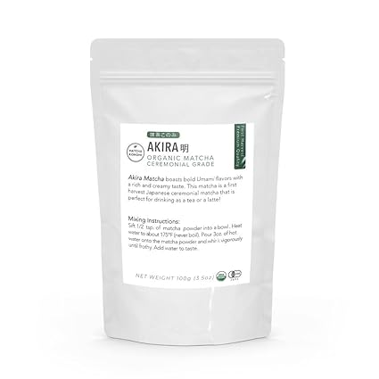 Akira Matcha 100g - Organic Premium Ceremonial Japanese Matcha Green Tea Powder - First Harvest - Zero Sugar - USDA and JAS Certified (3.5 oz bag)