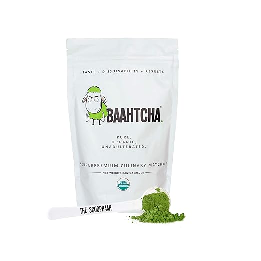 Baahtcha - USDA Organic Matcha Green Tea Powder - Premium Culinary Grade Natural Caffeine Energy Booster, Antioxidant, Kosher, Keto Friendly, Gluten Free, Vegan - Value Size, 250g
