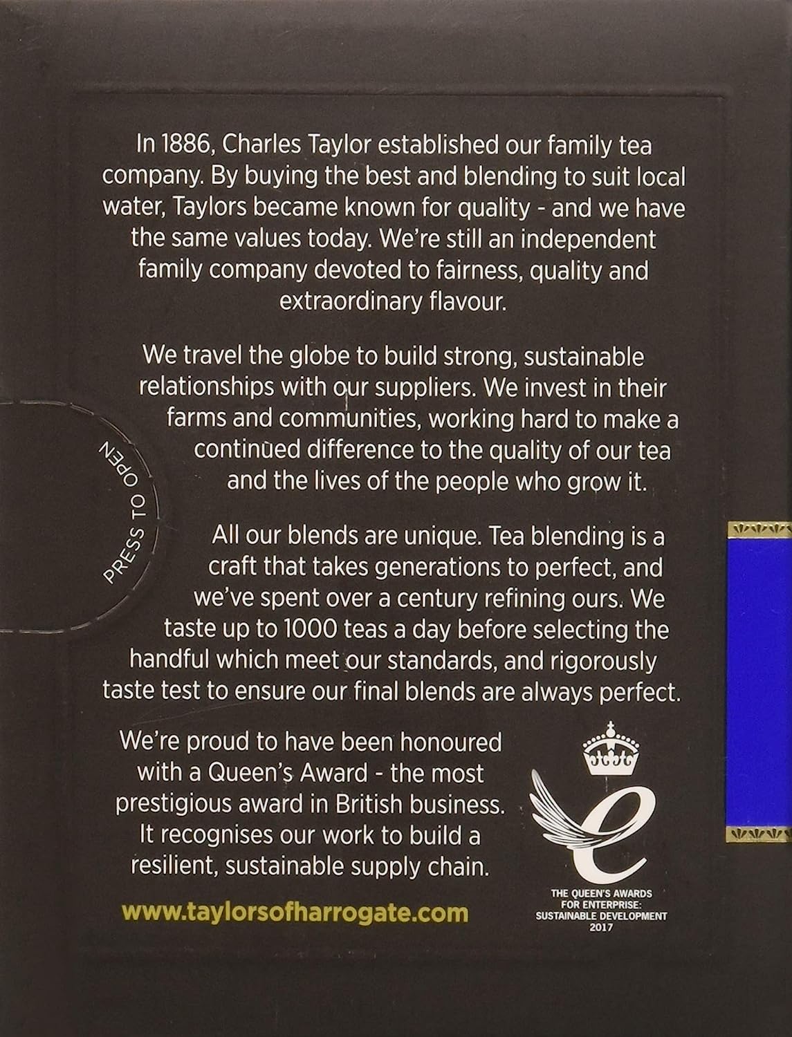• Taylors of Harrogate is Carbon Neutral Certified, a member of the Ethical Tea Partnership, and Rainforest Alliance Certified.