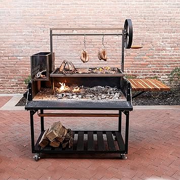 Backyard Discovery Argentine Santa Maria 5 ft. x 2 ft. Stainless Steel BBQ Grill with Powder-Coated Steel, Adjustable Grill Grates, Fire Brick, Charcoal, S-Hooks for Authentic Gaucho Outdoor Grilling