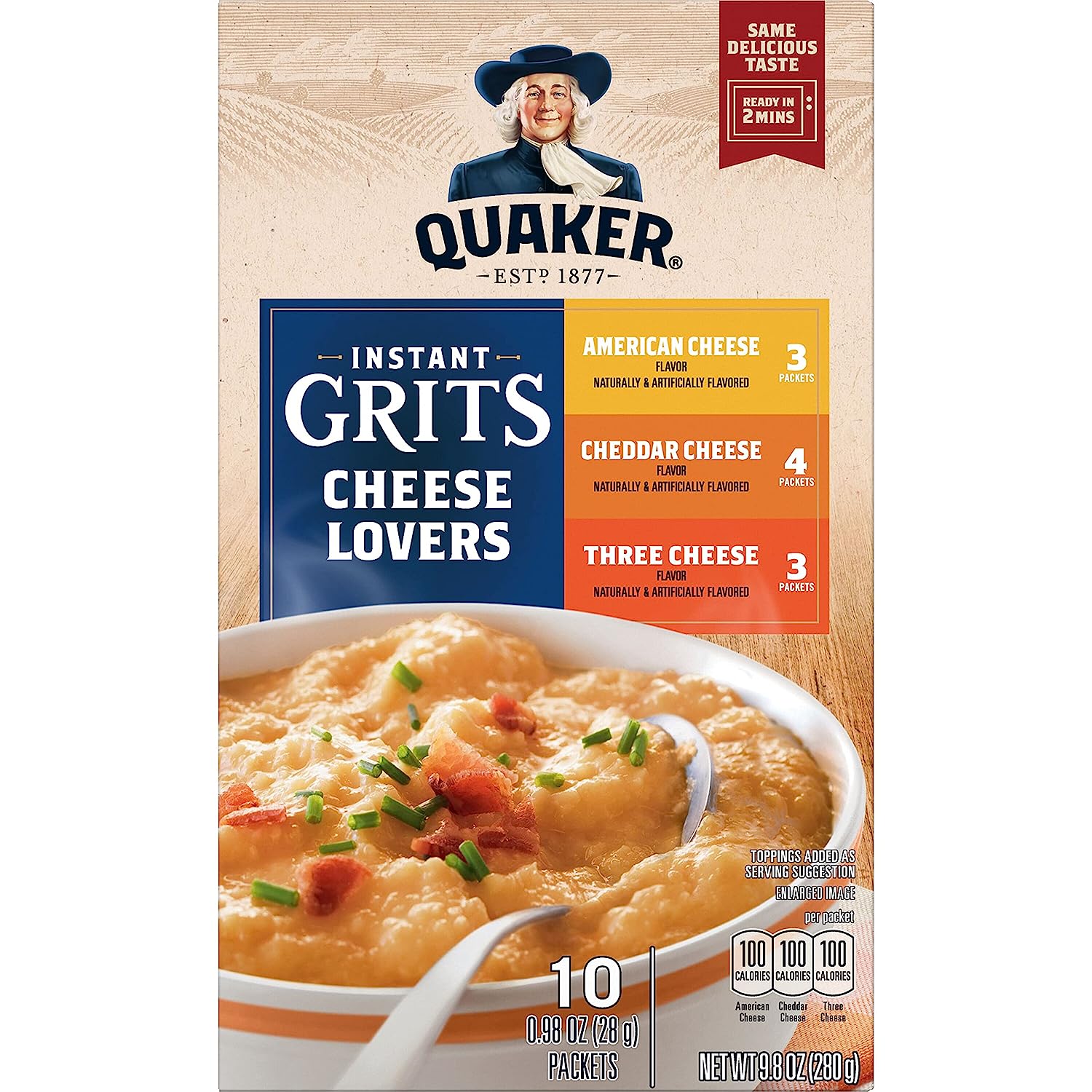 The savory combination of American, Cheddar and Three Cheese flavors makes Quaker Instant Grits the perfect addition to your favorite meal. They're delicious and ideal for your action-packed lifestyle—it only takes a minute to have them on the table.