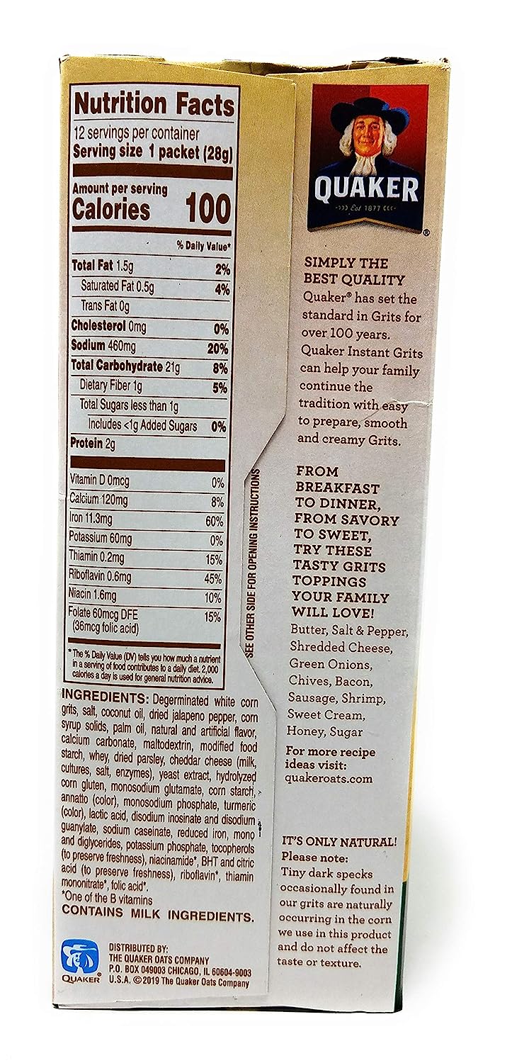 Quaker Instant Grits Jalapeno Cheddar Flavor 12 Servings
