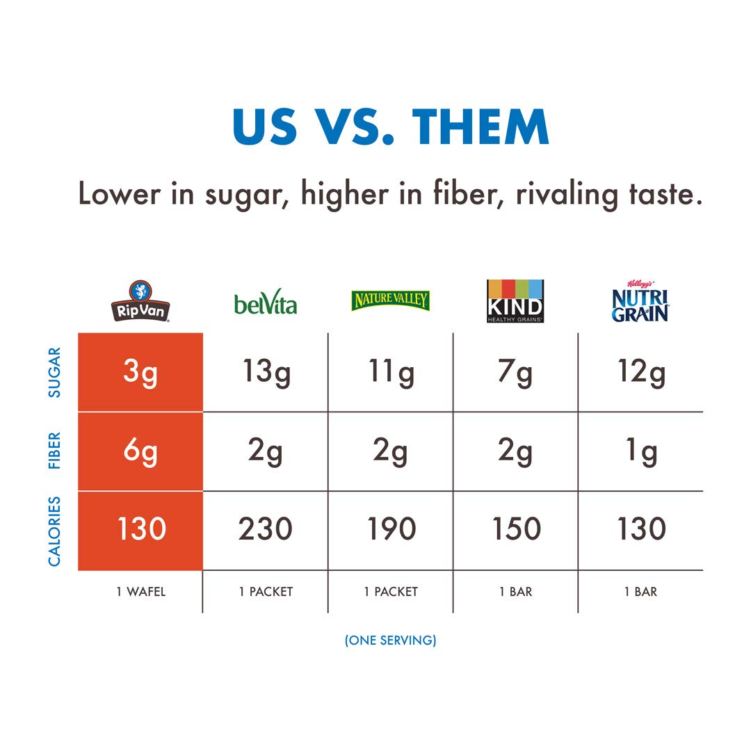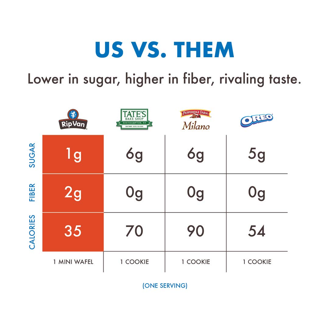 Rip Van Wafels are a delicious chewy low sugar snack inspired by the traditional Dutch Stroopwafel. Made with real ingredients, Rip Van Wafels allow you to indulge yourself without the guilt. This tasty snack is perfect for those on the go who want to satisfy their sweet tooth without sacrificing their diet. Rip Van Low Sugar Wafels are the perfect compliment to a cup of coffee. Enjoy them straight out of the packet or dunk them into cup of steaming coffee for an extra melty, chewy bite! Sleek, mini-sized, single serve packaging make them the perfect snack to throw into your bag or lunchbox for delicious snacking throughout the day. With only 34 calories per wafel, Rip Van Wafels allow you to indulge nutritiously. Now you can enjoy tasty indulgent snacks without sacrificing your diet! Endurance athletes love our low sugar, high carb ratio to keep them training longer and stronger.