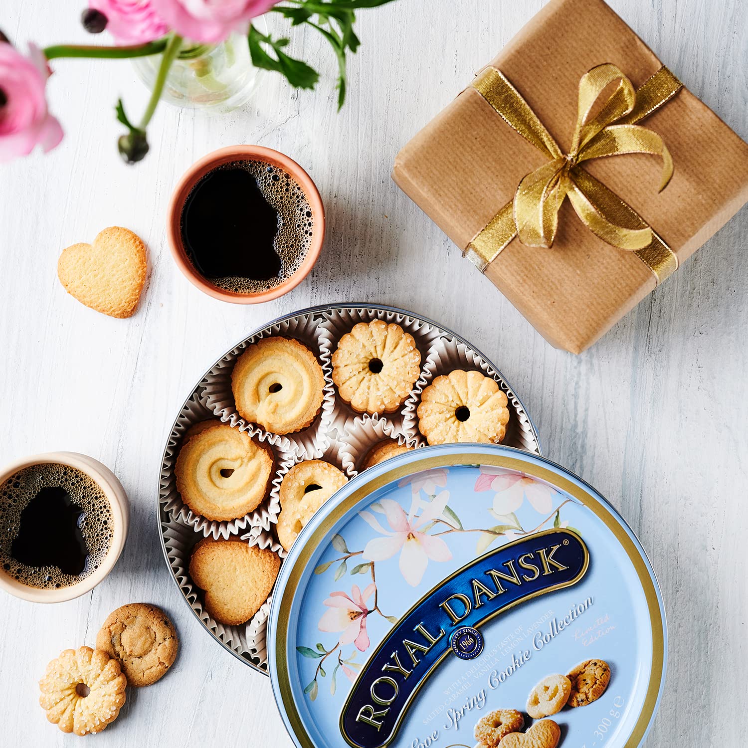 Royal Dansk Love Spring Cookie Collection contains a variety of butter cookie snacks that will make your Easter sweeter. This delicious tin of variety cookies comes with five (5) classic shapes of the Danish cookies that people know and love. Royal Dansk's century-old art of pastry-making meets an array of delectable springtime flavors to bring fresh cookies to the traditional tin. This snack variety pack includes lavender lemon cookies, salted caramel cookies, and vanilla cookies with the familiar buttery shortbread flavor. These delicious cookies are sweet enough for any Easter occasion. When making your gift basket of sweet snacks, add these tastefully refined shortbread cookies into the mix. Use them to create a wonderful bouquet of springtime flavors to compliment your Easter decorations or use them as Easter basket stuffers. Make your celebration even sweeter with cookies perfect for Easter gift giving or sharing.