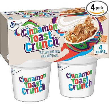 Cinnamon Toast Crunch Breakfast Cereal, 4 Pack 8 OZ Cereal Cup