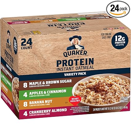 Quaker Instant Oatmeal, Protein 4 Flavor Variety Pack, 7g+ Protein, Individual Packets, 24 Count