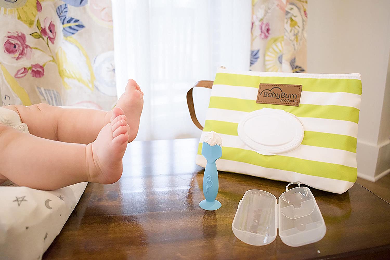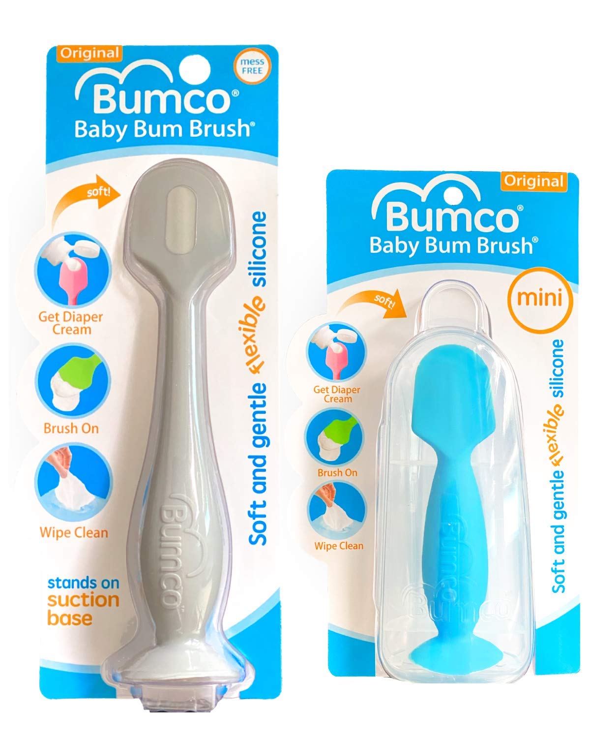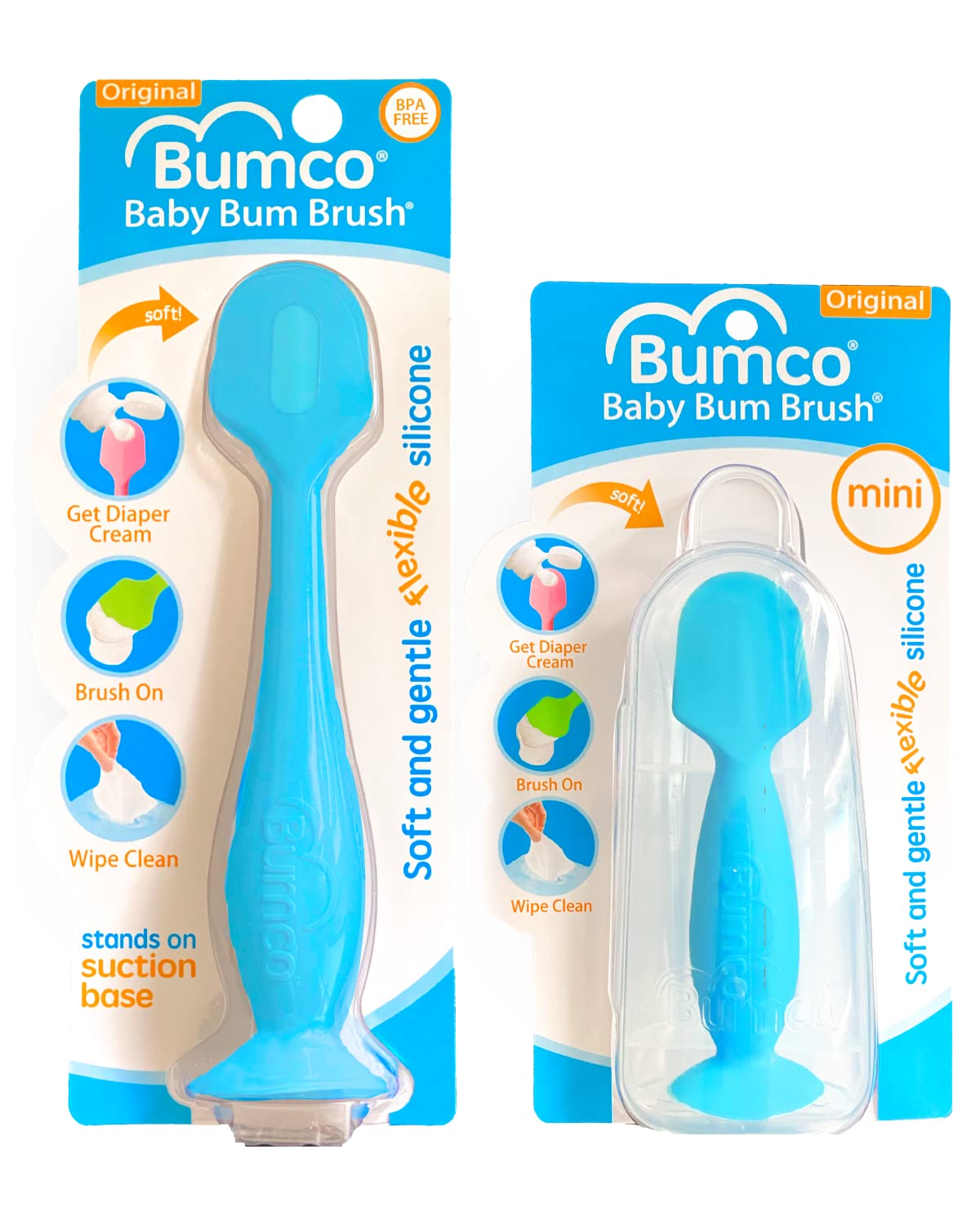 Baby Bumco products were invented by a mom who understands how heartbreaking it is when your little one is experiencing discomfort or pain. Help soothe your baby’s diaper rash with the Bumco Butt Brush. This unique butt ointment applicator will help you spread ointments, pastes, moisturizers, or healing creams onto your baby’s bottom. The cream will go on smoother, thicker, and faster when you utilize the genius design of our baby bum spatula. To use the brush, you apply a generous amount of cream to the brush. Then gently brush it on your baby’s butt. Wipe the brush clean with an antibacterial wipe. You can also boil the brush in hot water or toss in the dishwasher to sterilize it as needed. The baby bum stick is made from soft, smooth, flexible silicone that is soft and gentle on your baby’s delicate skin. The silicone is BPA-free and toxin-free for your little one’s safety. It is also compliant with California Proposition 65. This diaper rash applicator features a suction cup base that will allow it to stand upright on any surface. Our diaper rash brush is especially useful if you don’t like the smell of cream on your hands or getting it stuck under your nails. It will also reduce the risk of accidentally scratching your baby. Add this baby brush to a gift set or basket for a baby shower since it’s the perfect present new moms! It’s also perfect for nannies. The Bumco Butt Brush can be used for both baby boys and girls. Give your baby the best by adding this diaper cream applicator to your baby skincare supplies today!