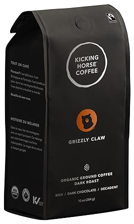 Kicking Horse Coffee, Grizzly Claw, Dark Roast, Ground, 10 oz - Certified Organic, Fairtrade, Kosher Coffee