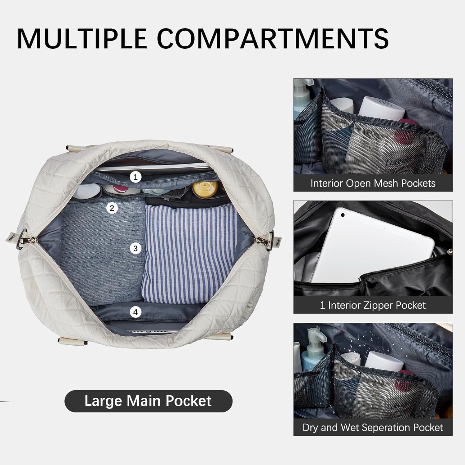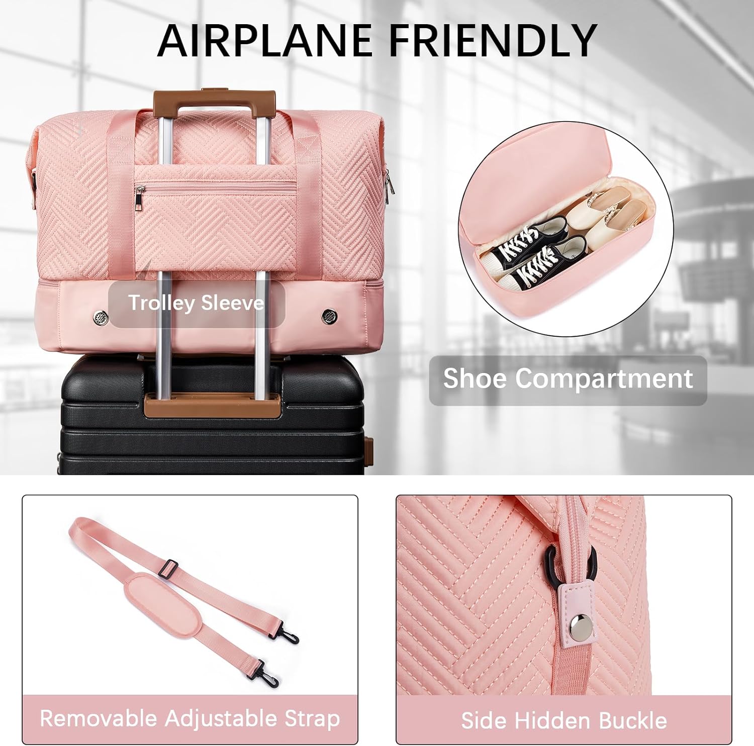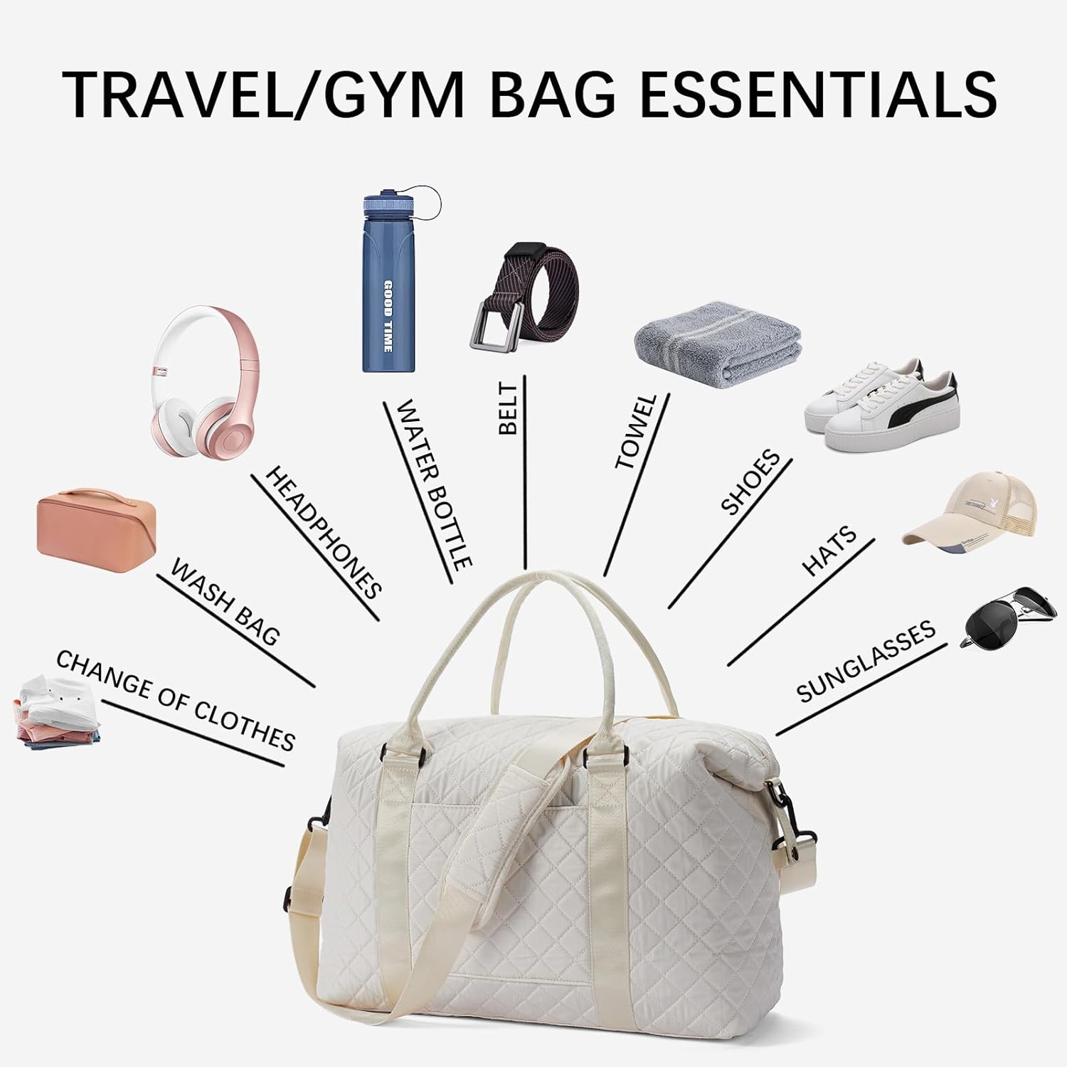 FIGESTIN Duffle Bag Weekender for Women Travel Tote Lightweight Carry On Overnight Girls Beige