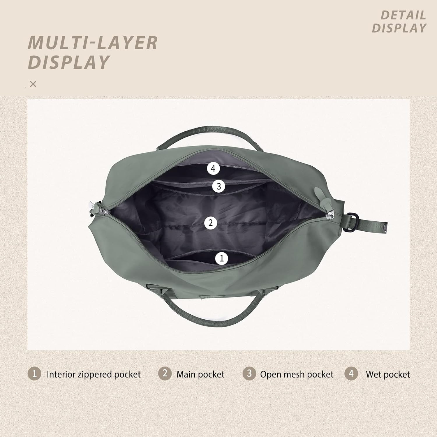 • 【Dry and Wet Separation】: The travel bag is made of high-density waterproof material, the dry and wet separation bag can help you separate dry and wet items, if you have wet clothes or towels, you can put them in the wet bag.