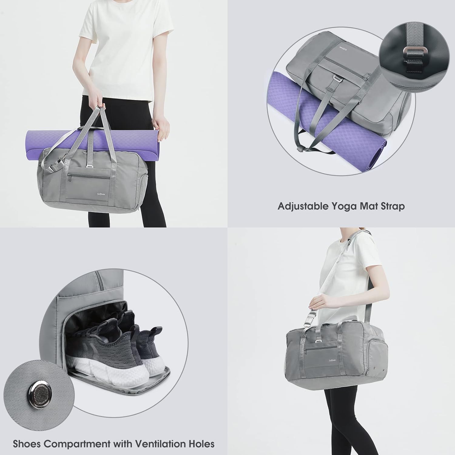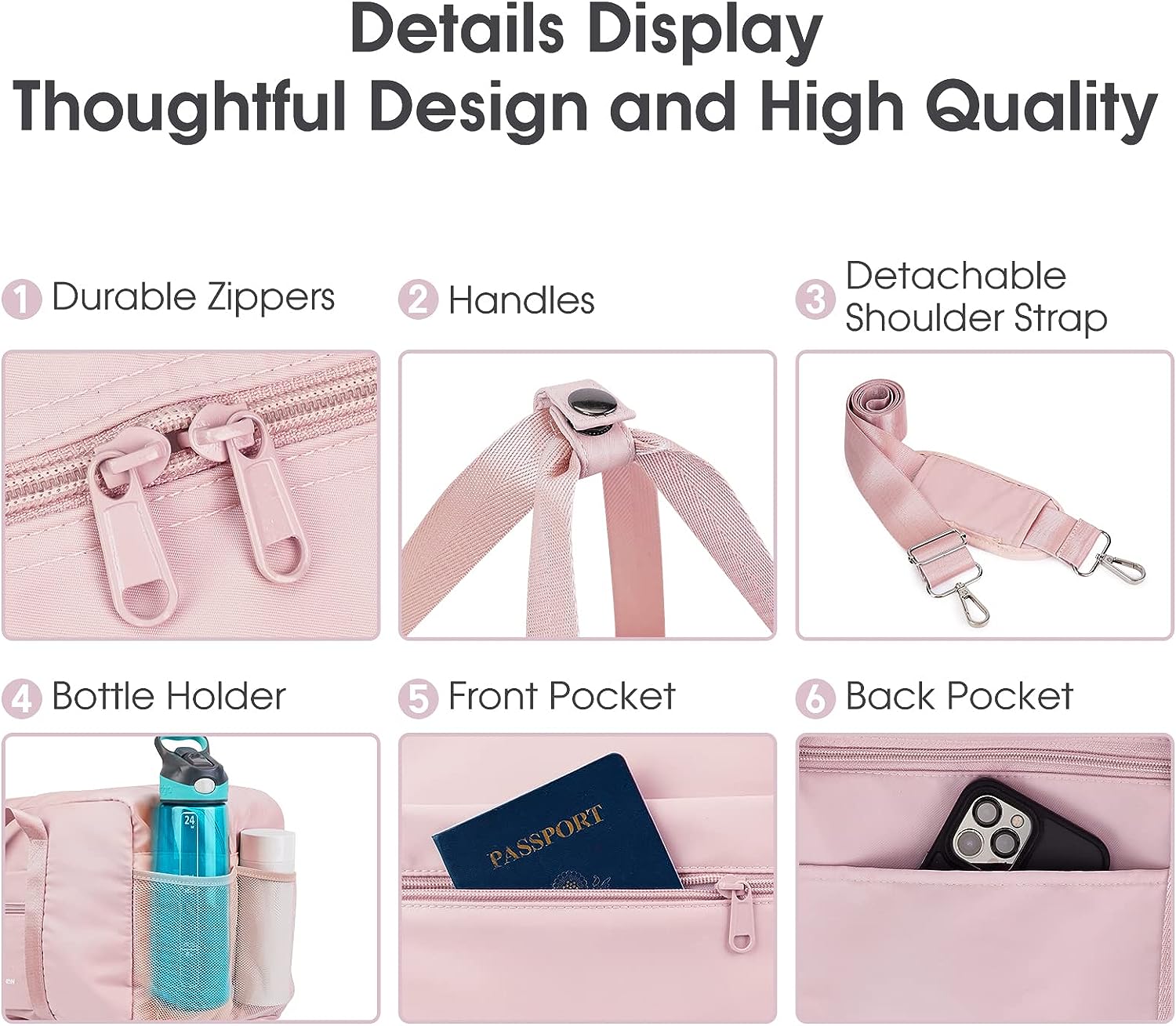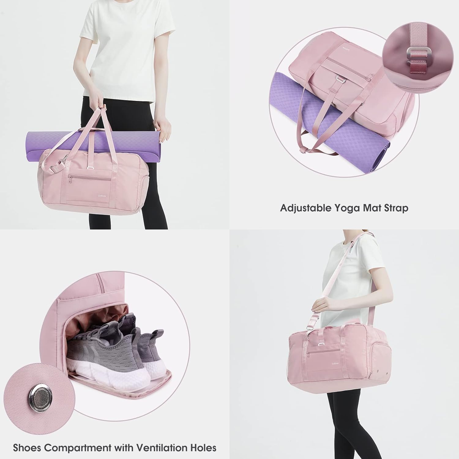 • Plenty Pockets for Storage & Built-in Yoga Mat Strap: Apart from 1 large main compartment, 1 wet pocket, 1 shoe storage, this travel bag also features 1 zip pocket on the front and 1 open pocket on the back for quick access to your belongings; Also, interior delivers 1 zip pocket can store your tech, wallet, keys, IDs, essentials and make more security. Moreover, A built-in yoga mat strap even allows you to carry your yoga mat around