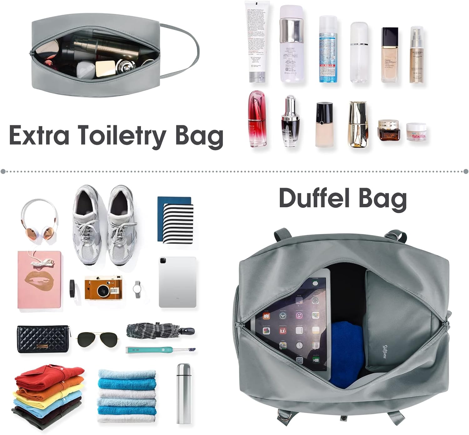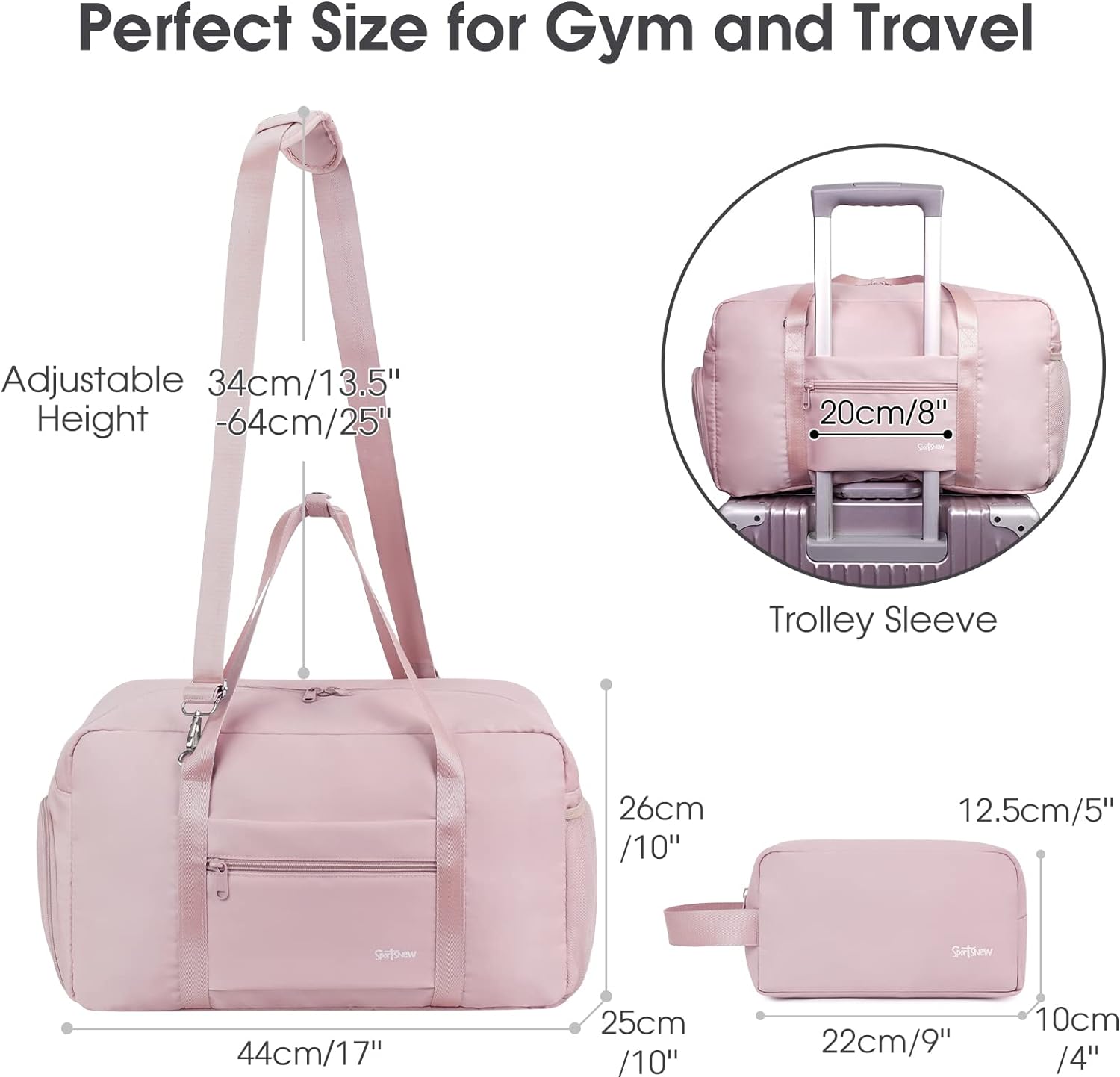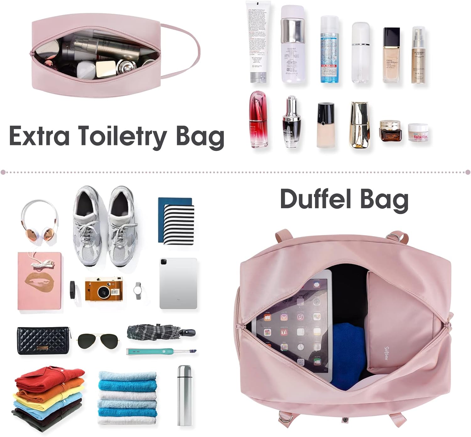• Plenty Pockets for Storage & Built-in Yoga Mat Strap: Apart from 1 large main compartment, 1 wet pocket, 1 shoe storage, this travel bag also features 1 zip pocket on the front and 1 open pocket on the back for quick access to your belongings; Also, interior delivers 1 zip pocket can store your tech, wallet, keys, IDs, essentials and make more security. Moreover, A built-in yoga mat strap even allows you to carry your yoga mat around