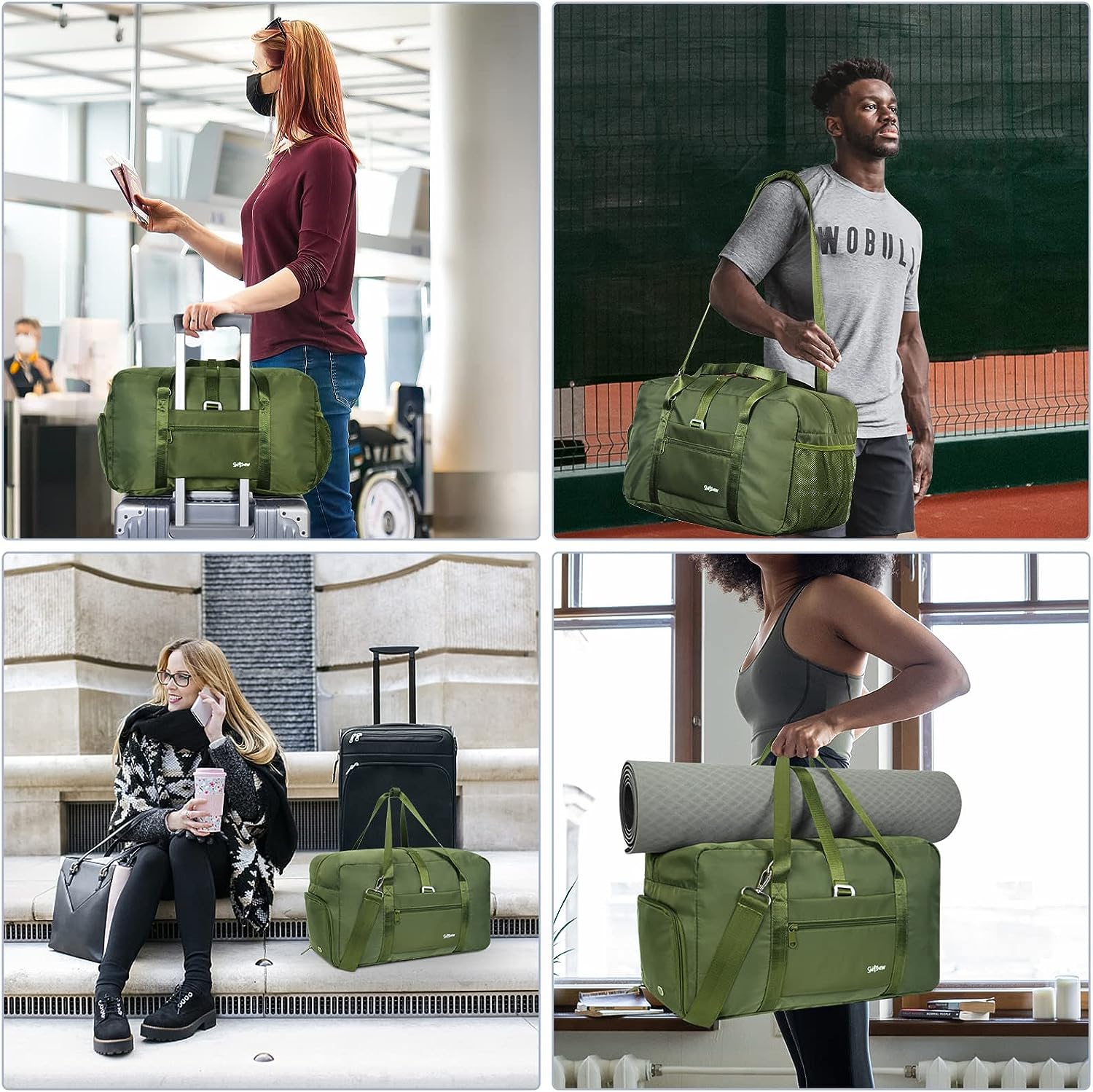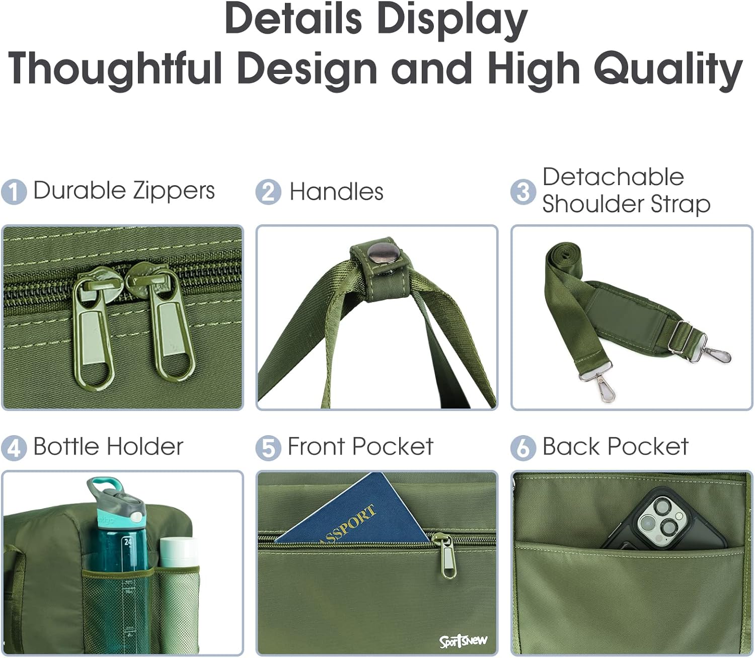 sportsnew Sports Gym Travel Duffel Bags Weekender Overnight Shoulder with Shoes Compartment and Wet Dry Storage Pockets with Adjustable Yoga Mat Holder Bags for Women Army Green