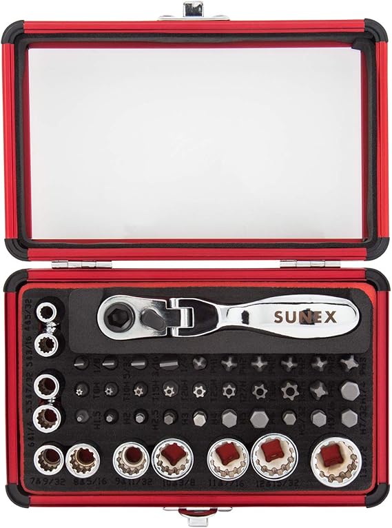 SUNEX TOOLS 9732 44Pc 1/4" Dr Mini Dual Flex Head RATCHET W Socket & Bit Set